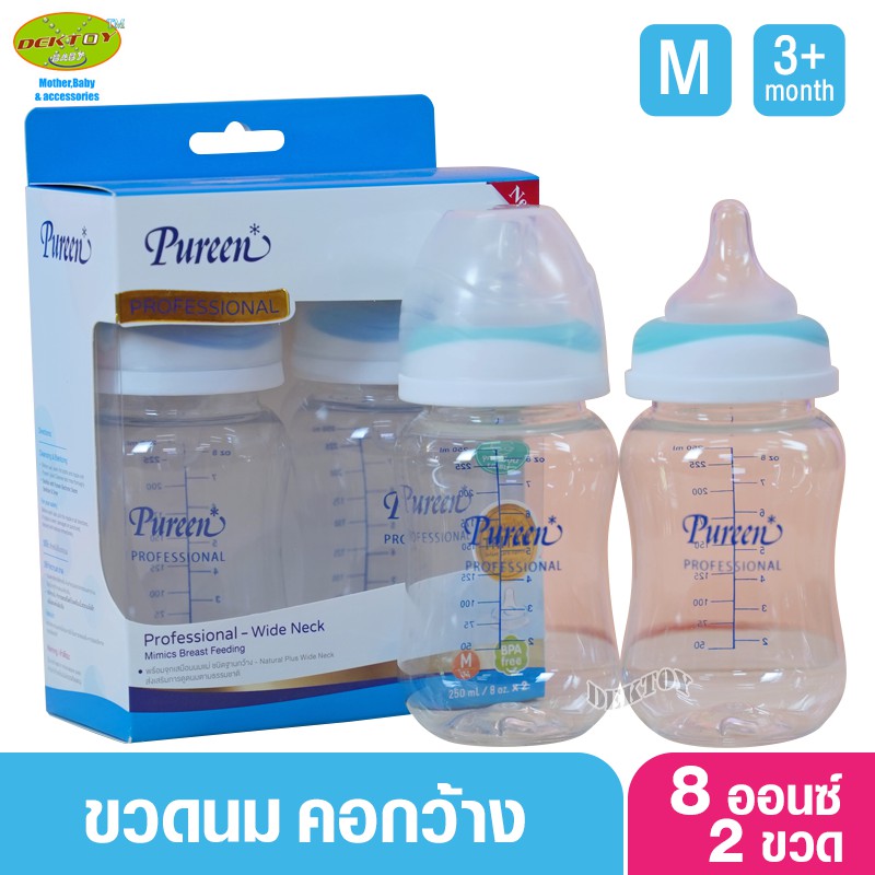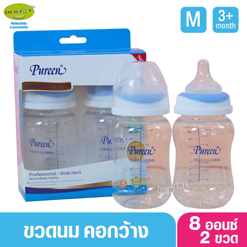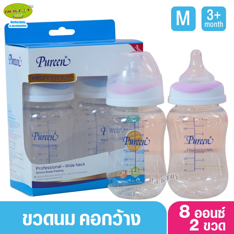 8ออนซ์ Pureen เพียวรีน ขวดนมเพียวรีน Tritan ไทรทัน8ออนซ์คอกว้างแพ็ค2ขวด