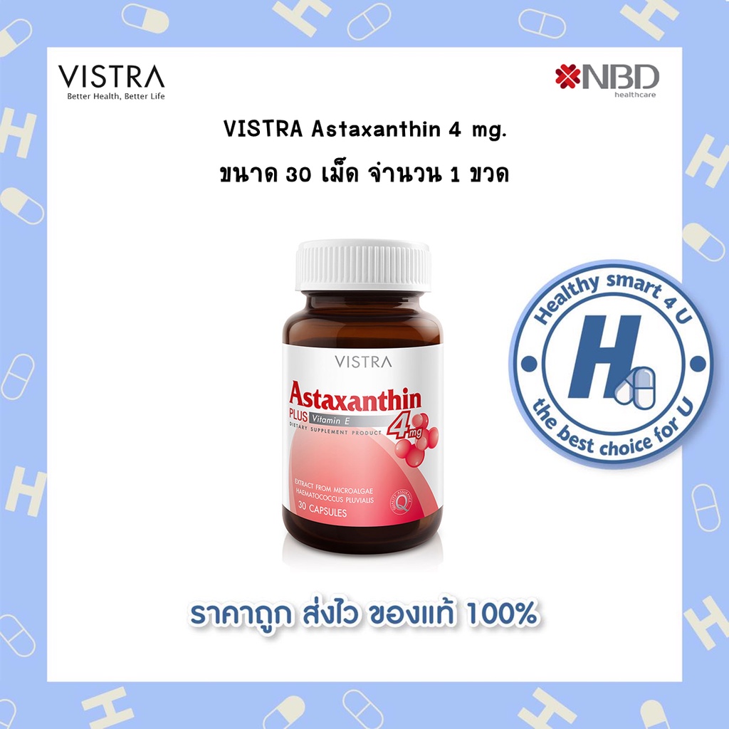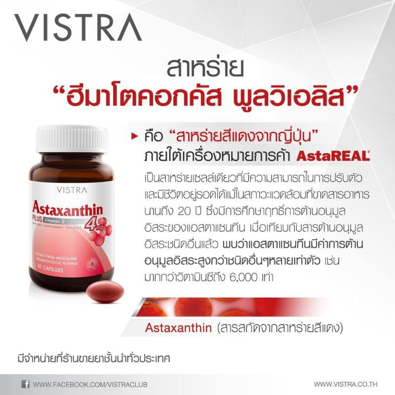 🔥🔥(ของแท้ร้านยา)🔥🔥VISTRA Astaxanthin 4 mg วิสทร้า แอสตาแซนธิน 4 มก. (30 แคปซูล) เป็นสารต้านอนุมูลอิสระ ลดริ้วรอย ชะลอ