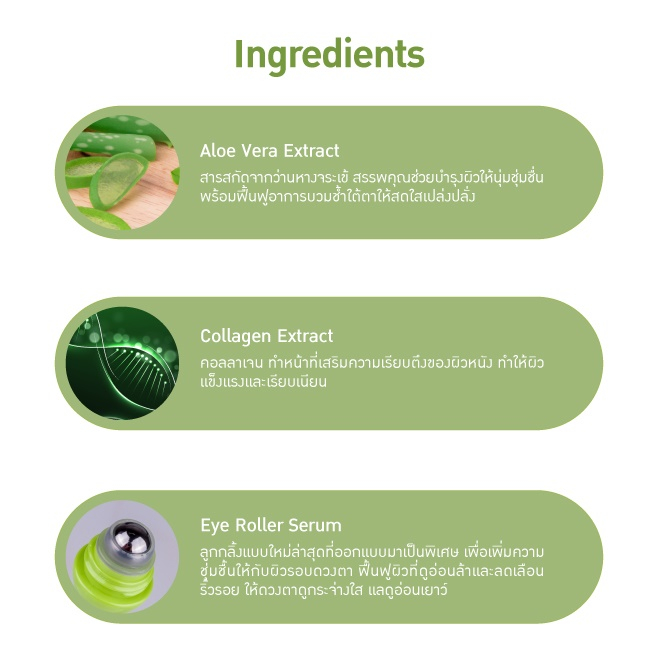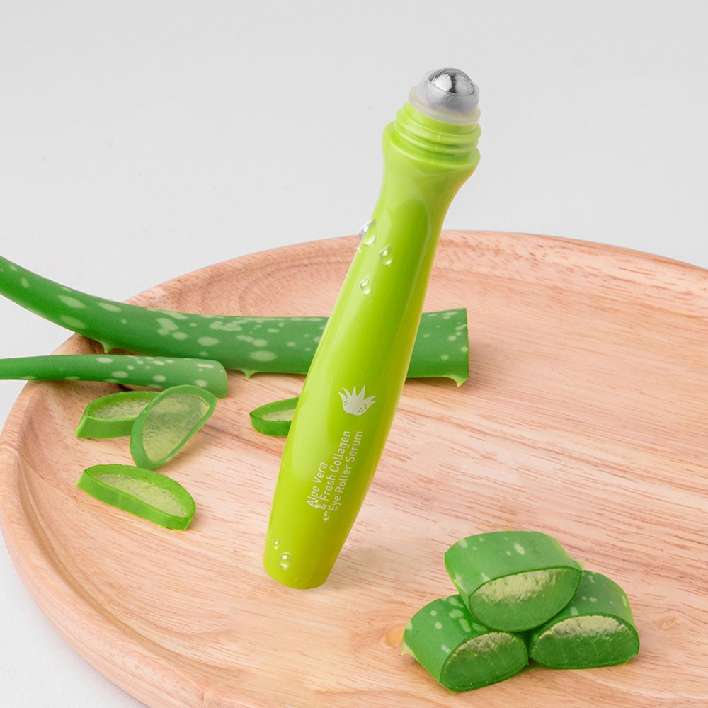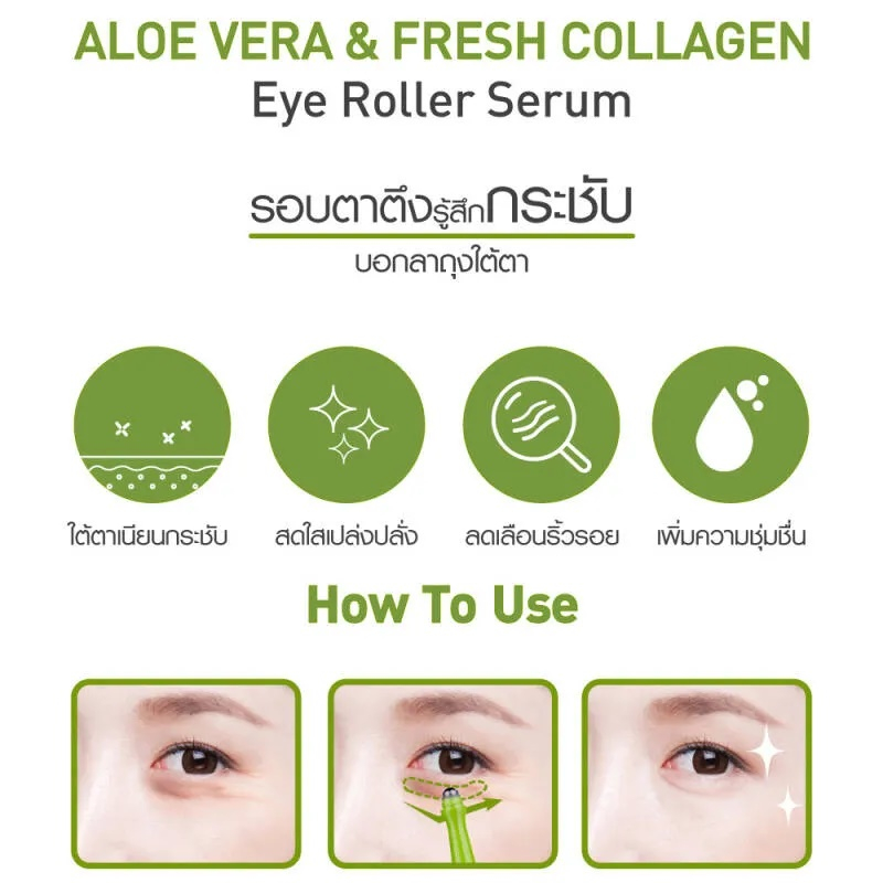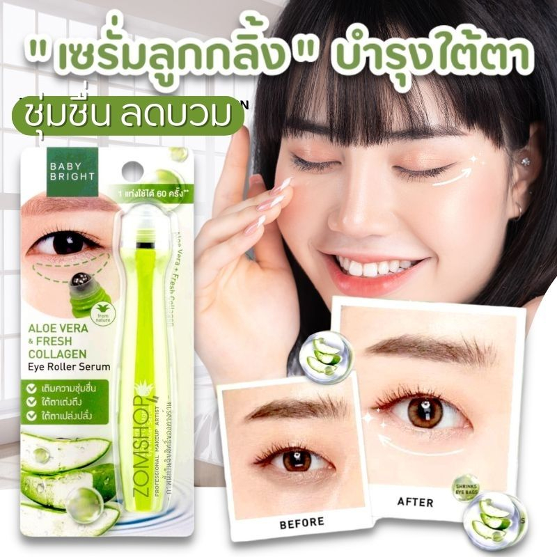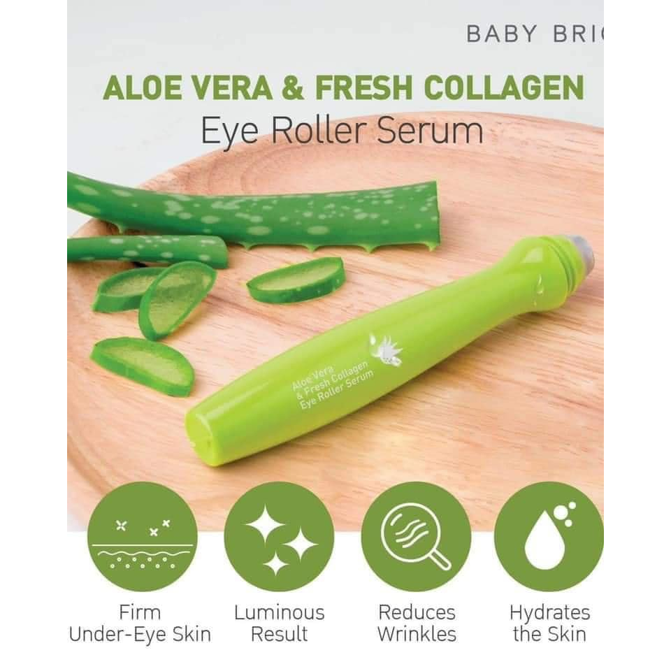 "ลูกกลิ้งบำรุงใต้ตา "【สูตรว่านหางจระเข้】กระจ่างใส ลดบวม BABY BRIGHT ALOE VERA & FRESH COLLAGEN EYE ROLLER SERUM 15ML
