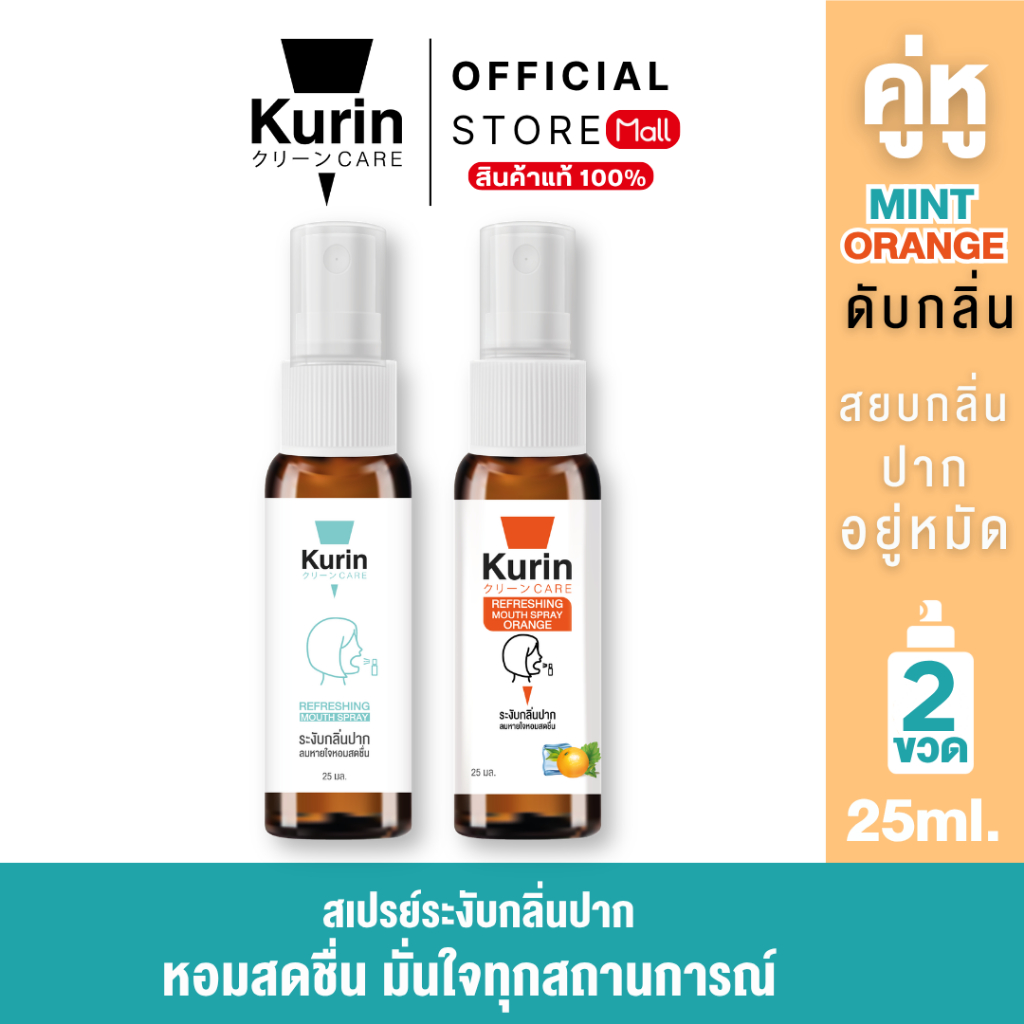 จับ คู่ kurin care Refreshing Mouth Spray Mint & Orange 25 ml.