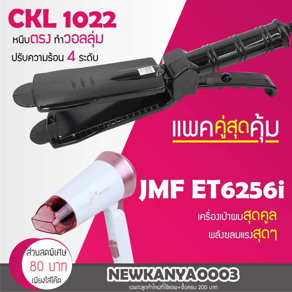 LIC 🔥 แพ็คคู่สุดคุ้ม 🔥เครื่องหนีบผม CKL / JMF 1022 ที่หนีบผม หนีบตรง หนีบเงา+ไดร์เป่าผม เครื่องเป่าผม ที่เป่าผม JMF 6256