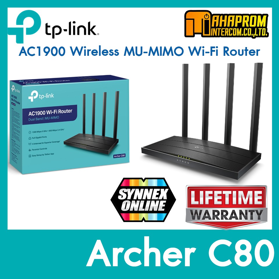 เร้าเตอร์ AC1900 TP-Link รุ่น Archer C80 เทคโนโลยี MU-MIMO Dual Band (2.4 / 5.0 GHz) สินค้ามีประกัน