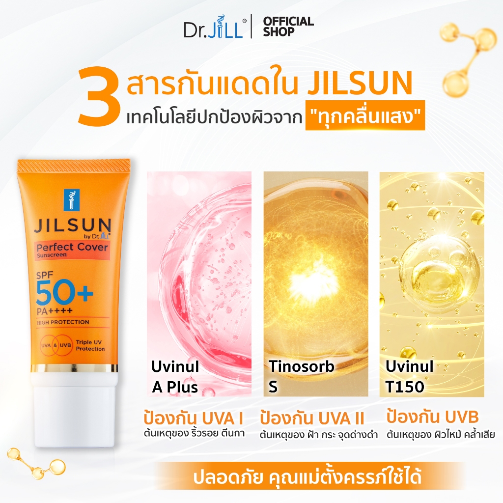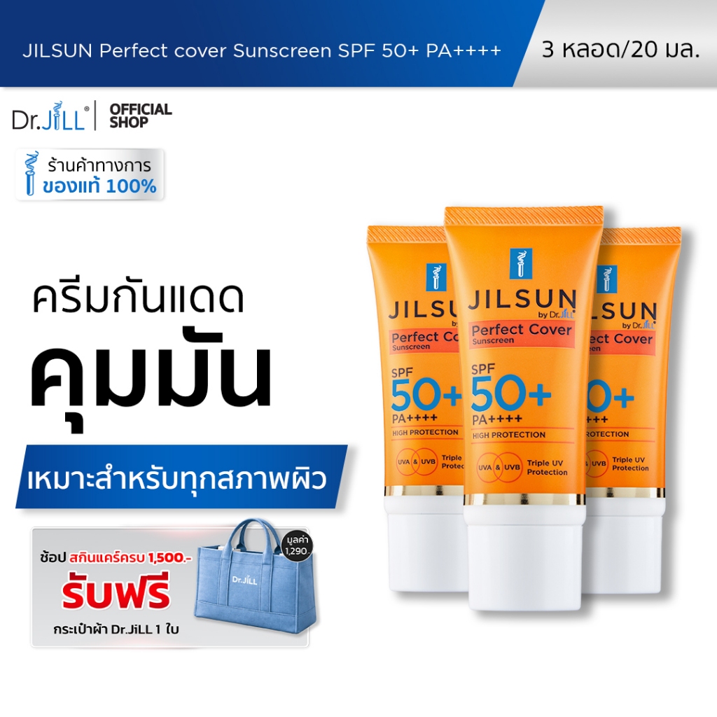 [ส่งฟรี] 3 หลอด ครีมกันแดด Dr.JiLL สูตรปกปิด เนื้อแมท JILSUN Perfect Cover SPF50+ PA++++ 20 mL.
