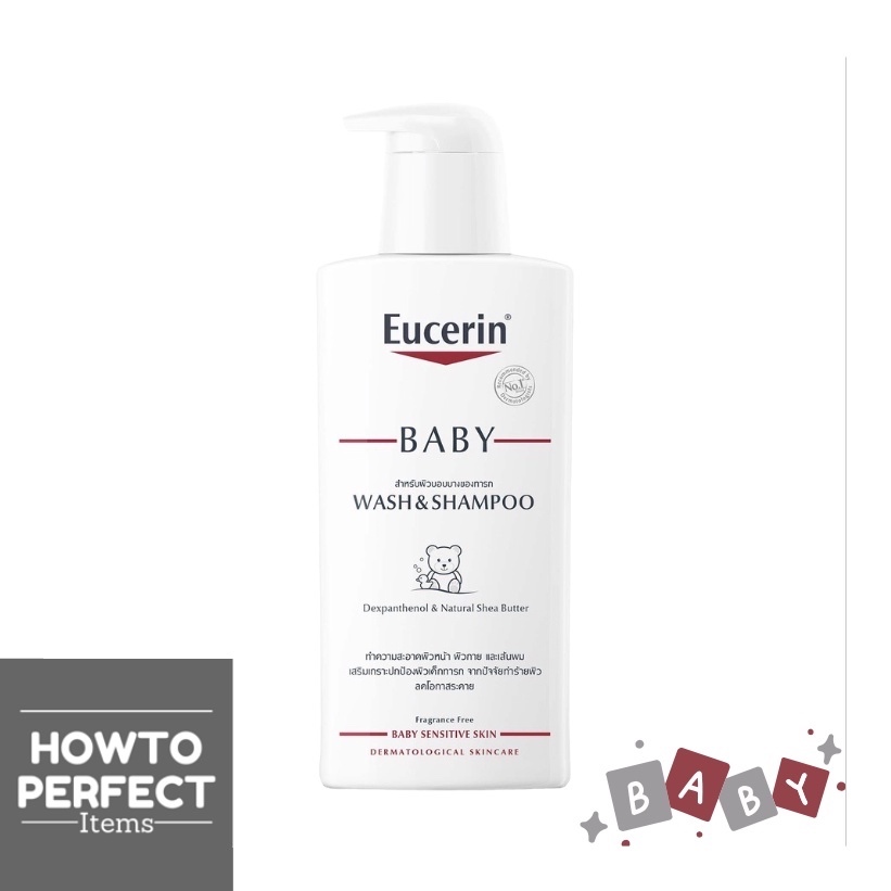 Eucerin Baby Wash & Shampoo ( ยูเซอริน เบบี้ วอช แชมพู ทำความสะอาดผิวหน้า ผิวกาย เส้นผม สูตรอ่อนโยน เหมาะสำหรับผิวเด็ก