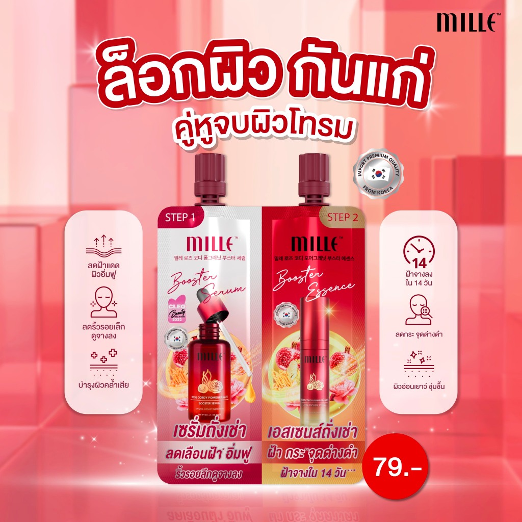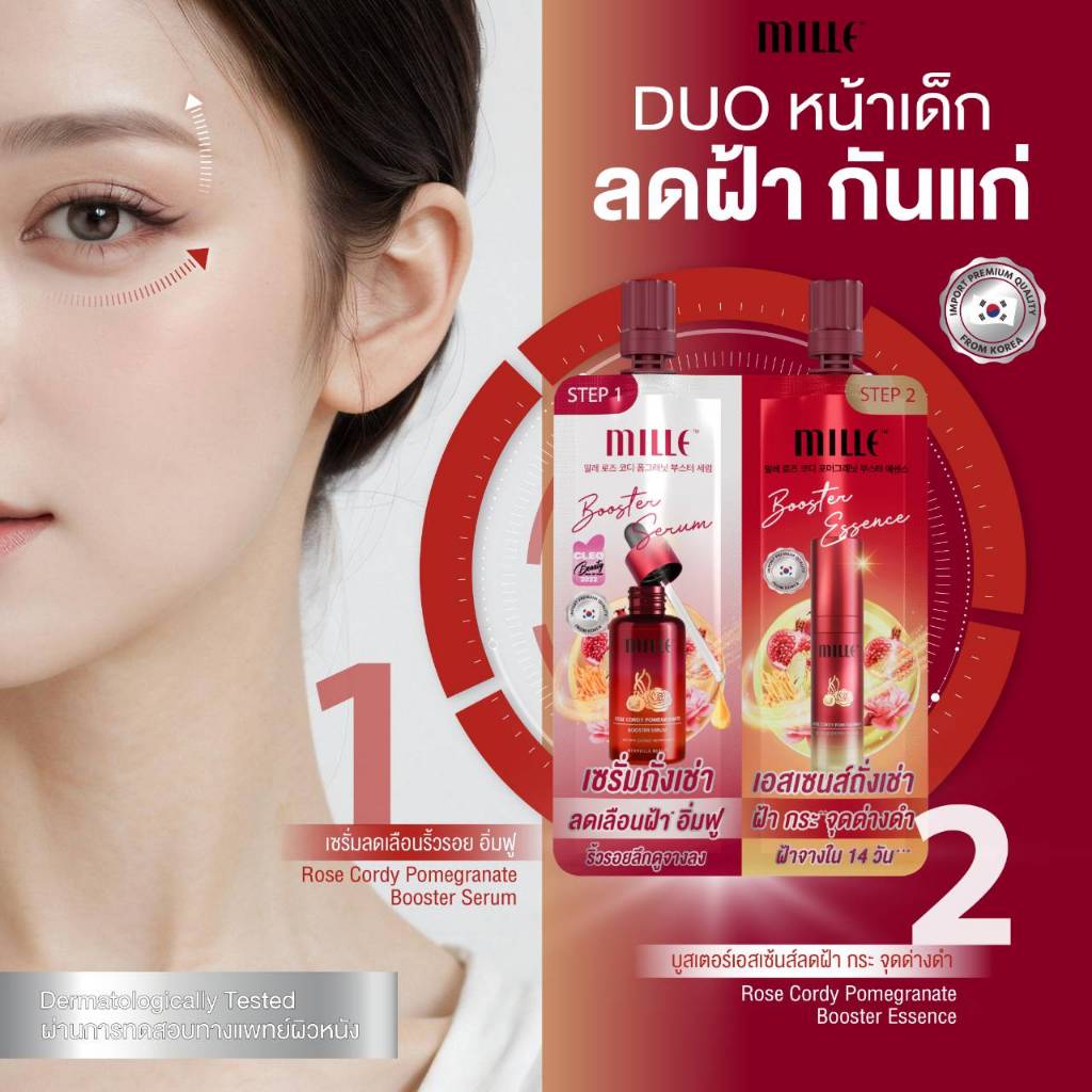 [ซอง] MILLE ซองคู่เซรั่ม เอสเซ้นส์ ลดริ้วรอย ROSE CORDY POMEGRANATE DUO BOOSTER 4G.+4G.