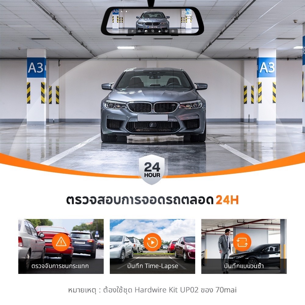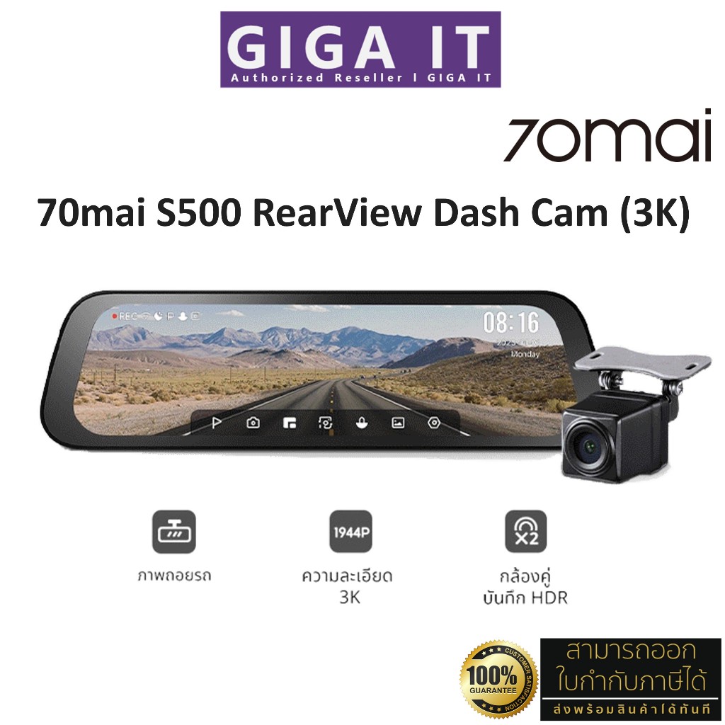 70Mai S500 RearView 1944P 3K + กล้องหลัง Set + ภาพถอยหลัง กล้องติดรถยนต์หน้า 3K - หลัง HDR รับประกันศูนย์ไทย 1 ปี