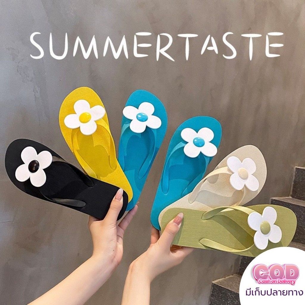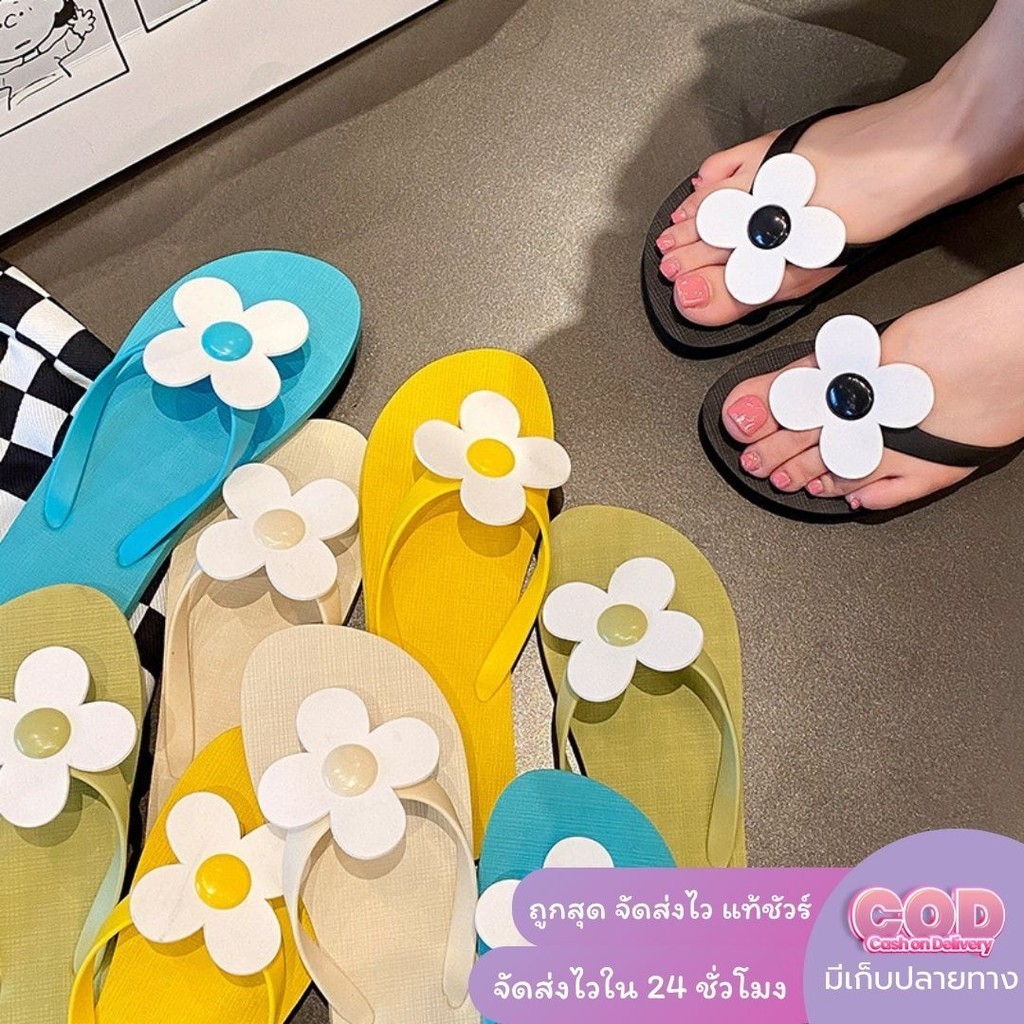 รองเท้าแฟชั่น รองเท้าแตะสตรี แตะห นีบ แต่งดอกไม้ สุดน่ารัก ใส่สบายใส่แล้วเท้าดูเล็กลง