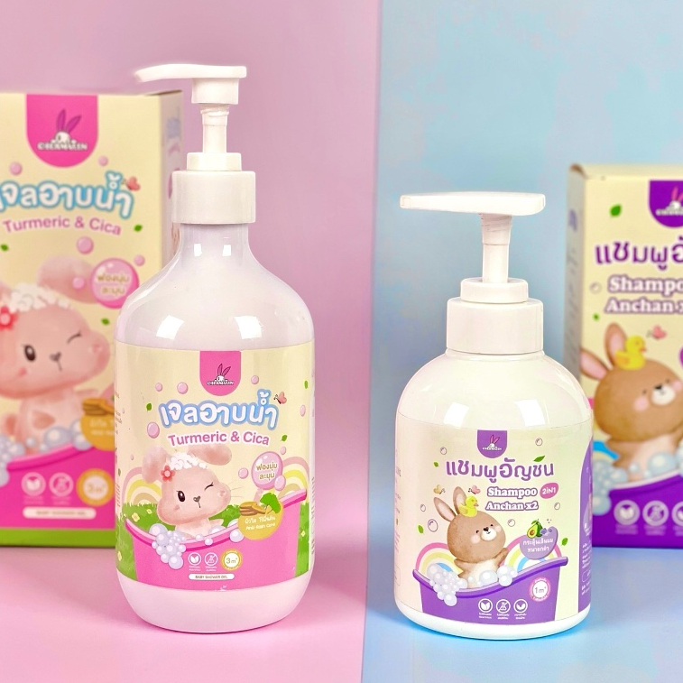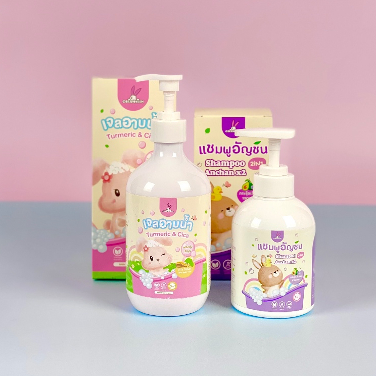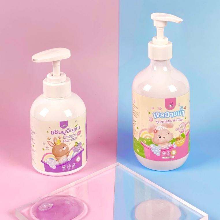 เซ็ตคู่ - เจลอาบน้ำเด็กขมิ้นใบบัวบก 450ml.+แชมพูเด็กอัญชันอโวคาโด 250ml. เพิ่มความสุขในการอาบน้ำ