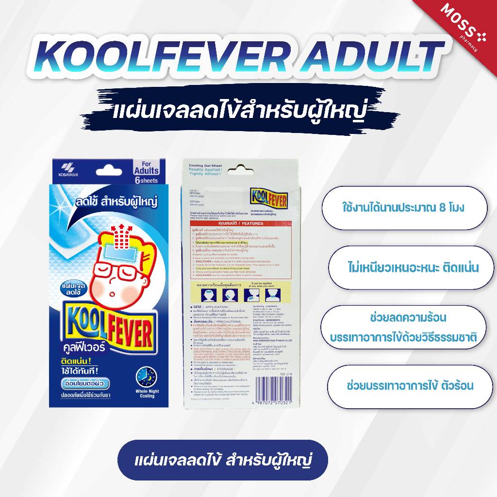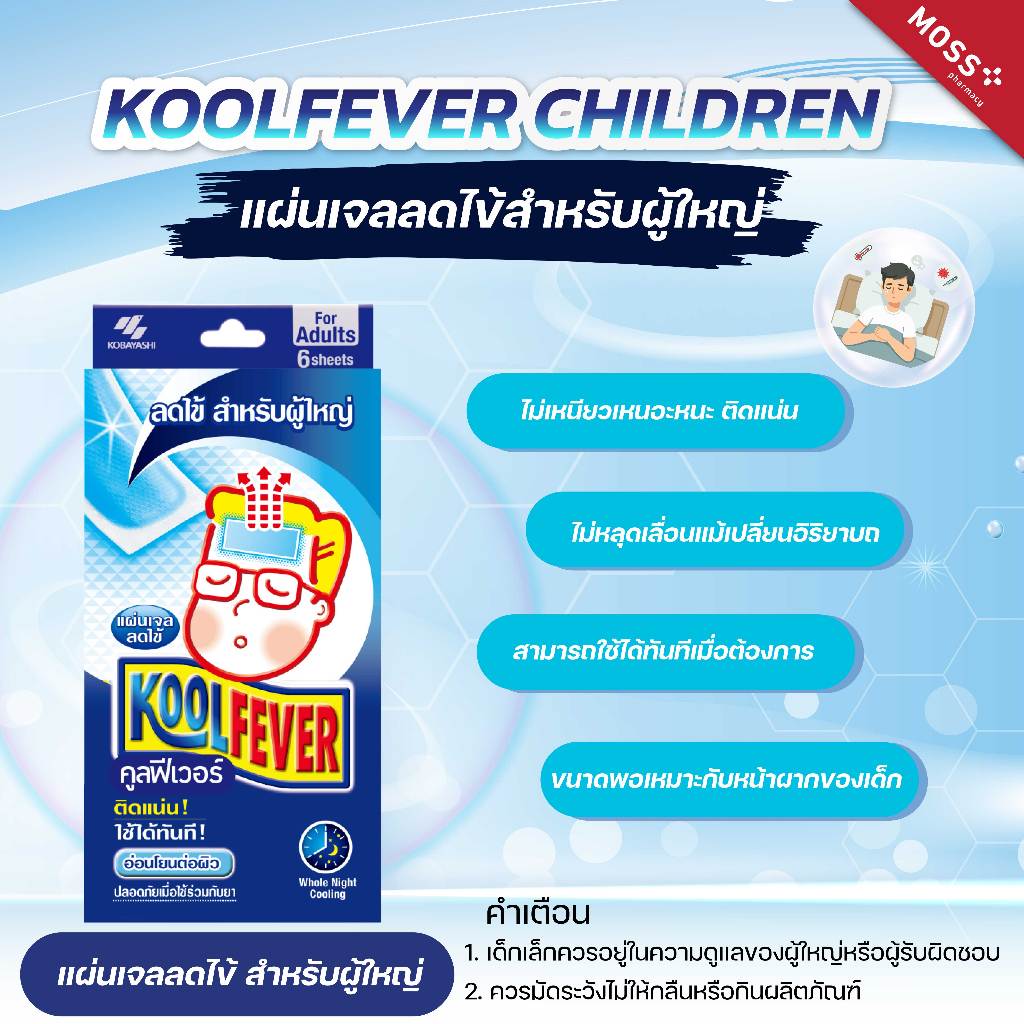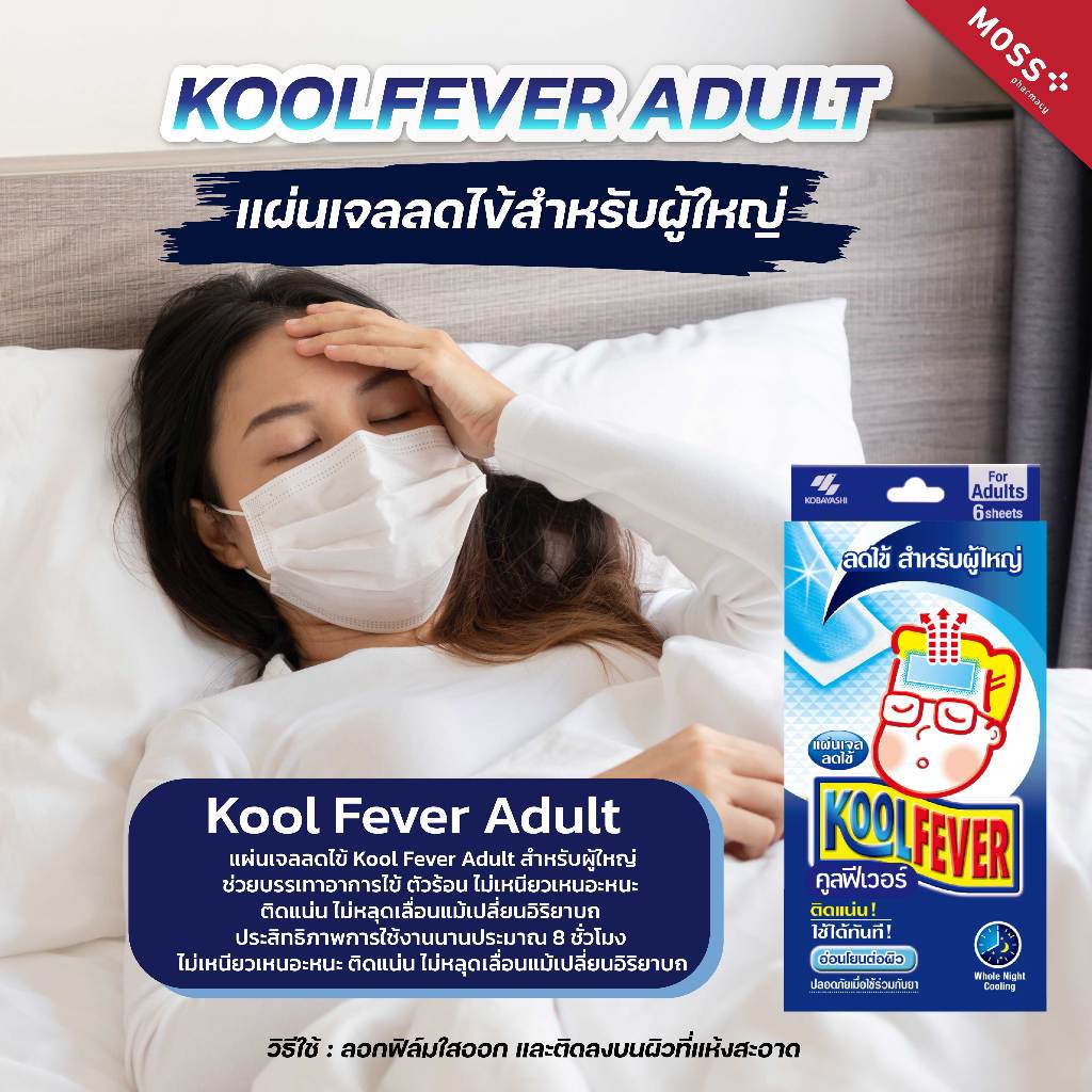 KOOLFEVER ADULT (คูลฟีเวอร์) แผ่นเจลลดไข้ สำหรับผู้ใหญ่ บรรจุ 2แผ่น/ซอง , 3ซอง/กล่อง