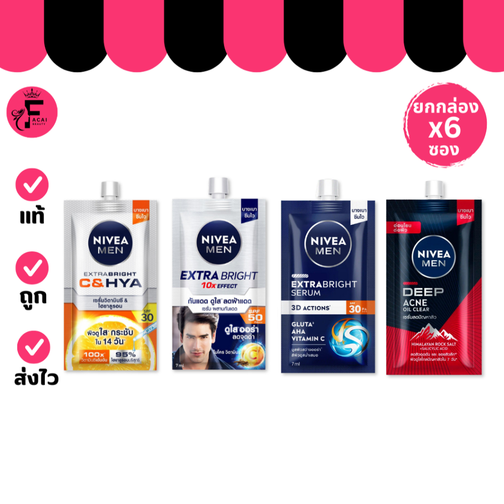 (กล่อง 6 ซอง) NIVEA นีเวีย เมน วิตามิน เซรั่ม/กันแดด/เซรั่มผสานเกลือ (ปริมาณ 7 ml.)