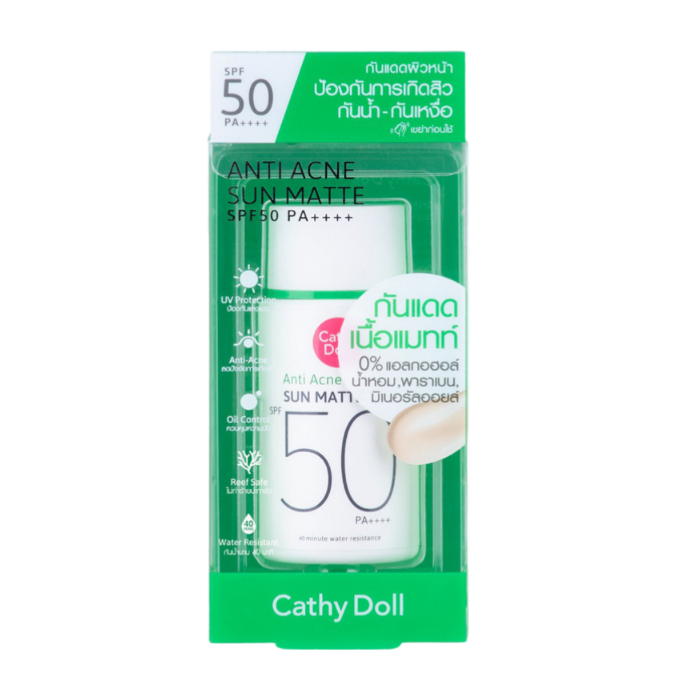 (1 หลอด) กันแดดเนื้อแมทท์ Cathy Doll Anti Acne Sun Matte SPF50 PA++++ 40 กรัม