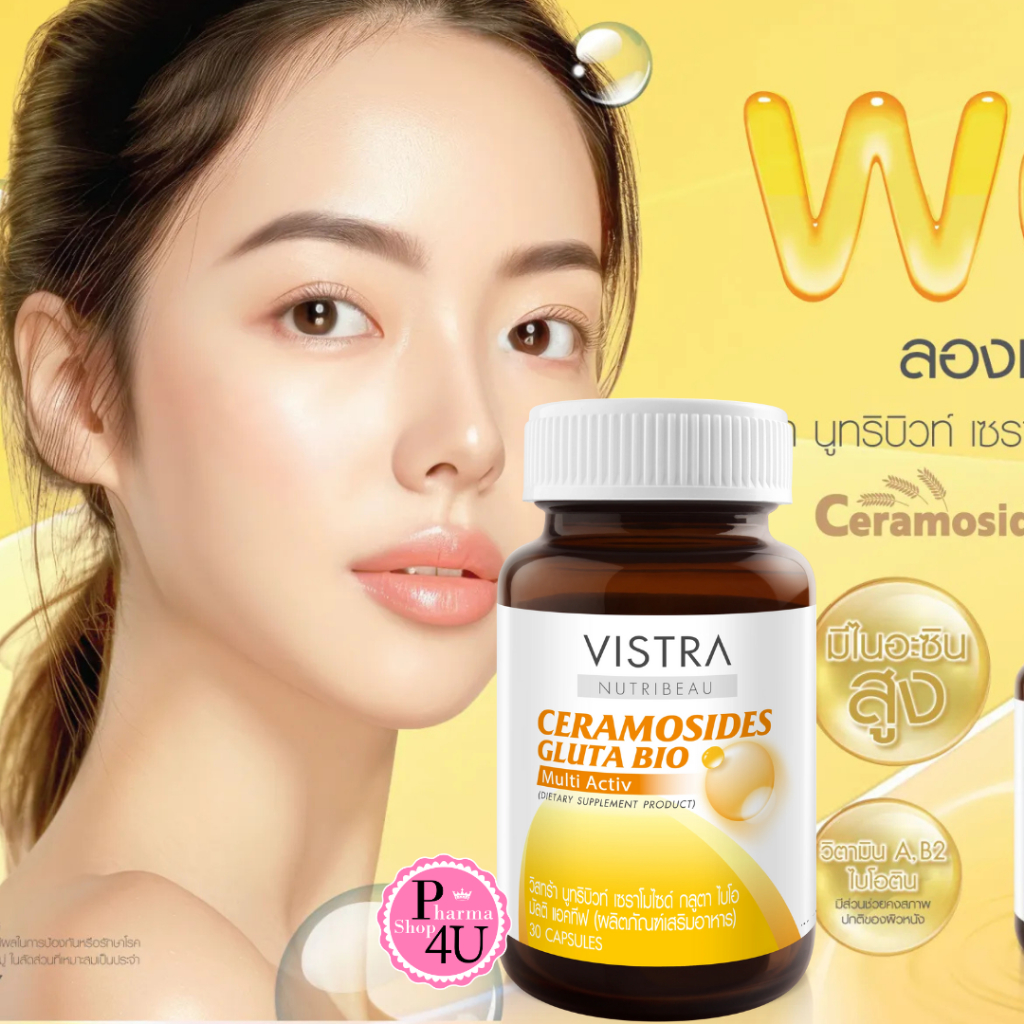 VISTRA Nutribeau Ceramoside Gluta Bio Molti Activ 30แคป นูทริบิว เซราโมไซด์ กลูต้า ไบโอ #12555