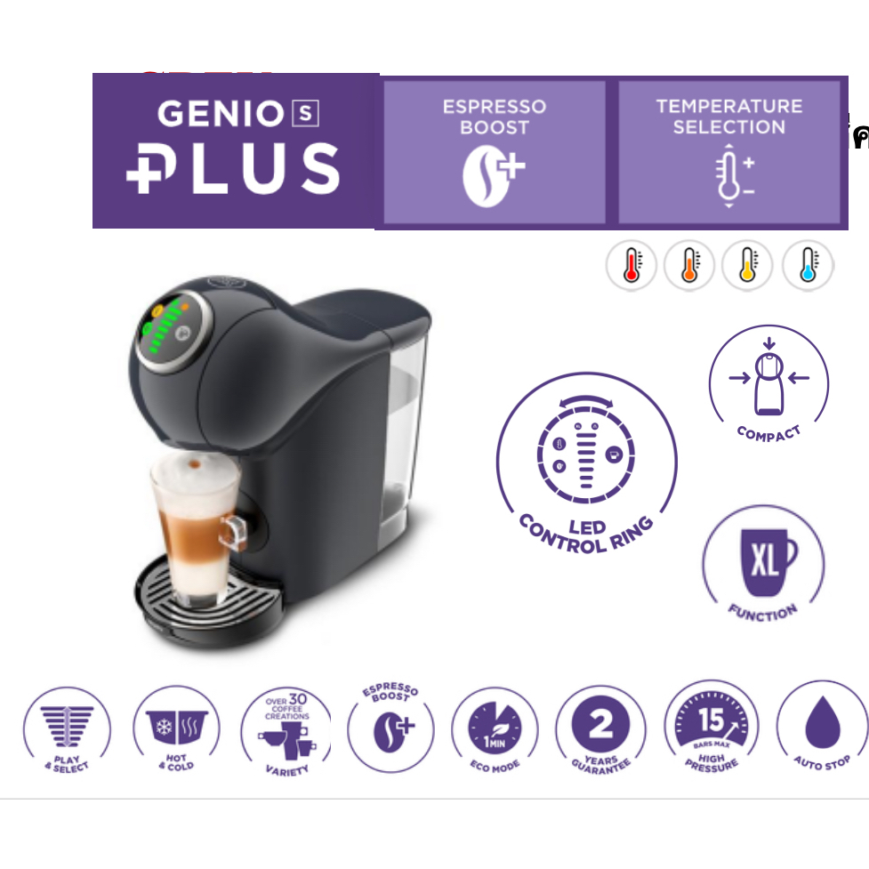 🔥🔥KRUPS Nescafe เครื่องชงกาแฟแบบแคปซูล GENIO S PLUS ระบบauto รุ่น KP3408 (สีดำ) / KP3405 (สีแดง) / KP340B สีคอสมิค เกรย์