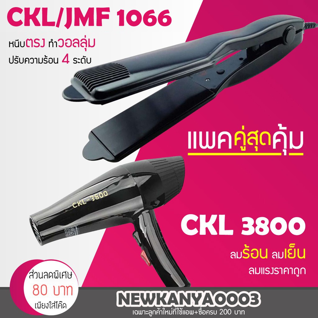 LIC 🔥 (แพคคู่สุดคุ้ม) 🔥 เครื่องหนีบผม CKL / JMF 1066 + ไดร์เป่าผม CKL / JMF 3800