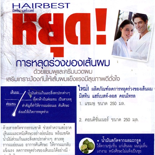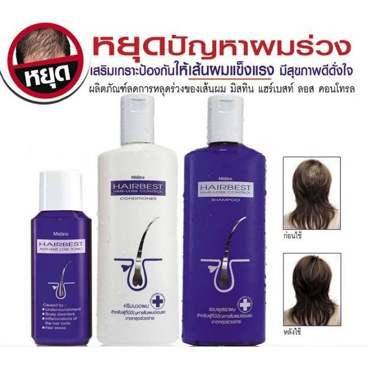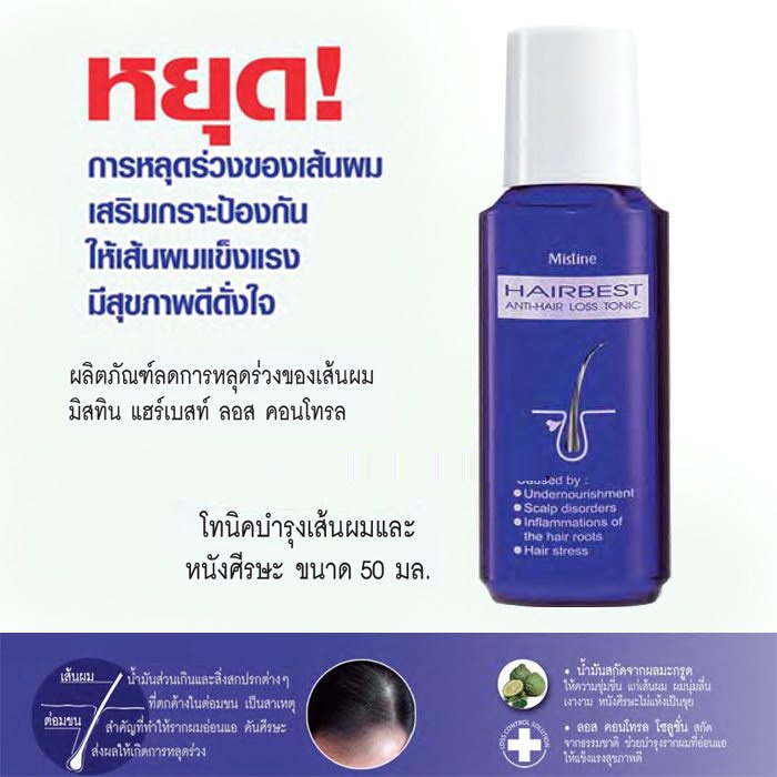มิสทีน แฮร์เบส แก้ผมร่วง ลดผมร่วง บำรุงเส้นผม ที่มีปัญหาขาดหลุดร่วงง่าย Mistine HairBest Hair-Loss