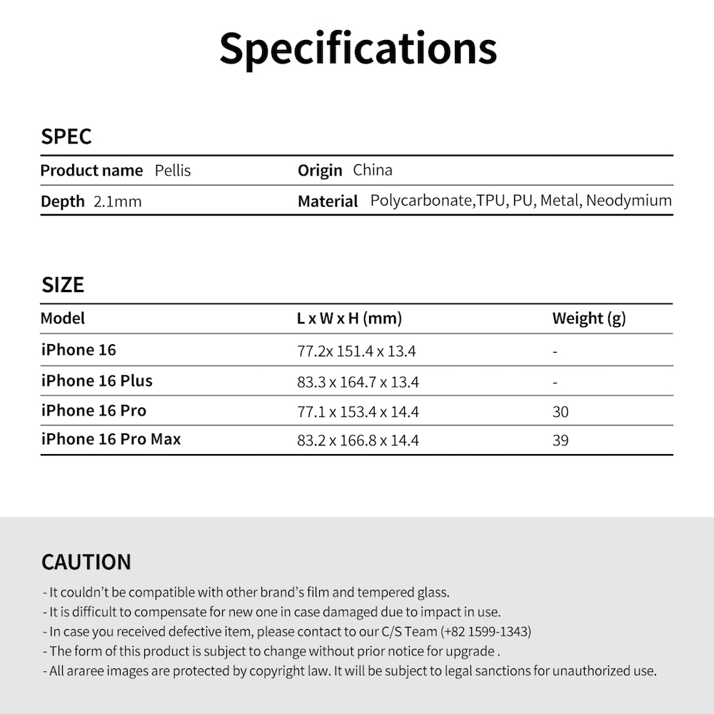ARAREE PELLIS เคสหนังพรีเมียมสำหรับ 16 / 16 Plus / 16 Pro / 16 Pro Max