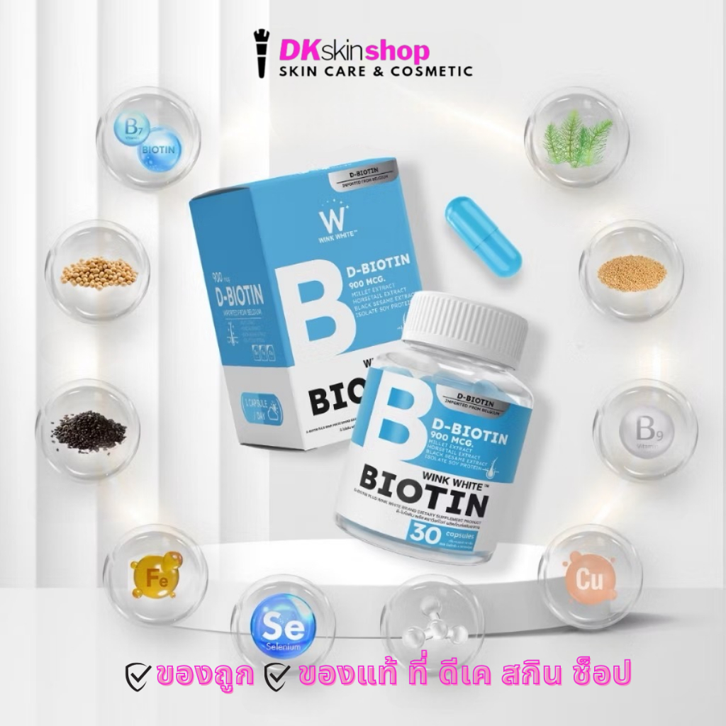วิงค์ไวท์วิตามิน กลูต้า/แอสตาแซนทิน/ซิงค์/ลูทีน/ไบโอติน Wink White Vitamin GLUTA/ASTAXANTHIN/ZINC/LUTEIN/BIOTIN 30แคปซูล