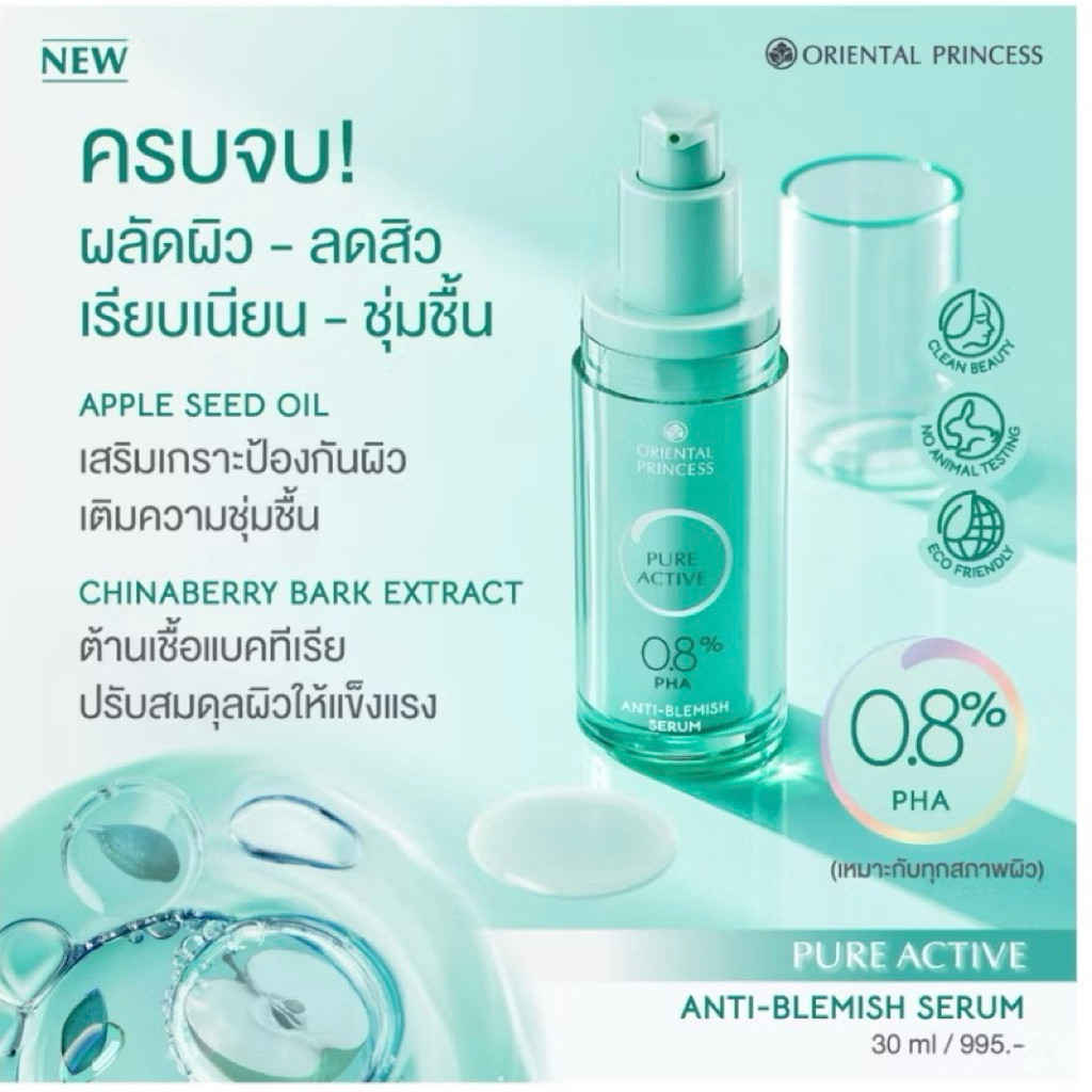 Oriental Princess Pure Active skin serum 30ml. เซรั่มบำรุงผิวหน้า สูตรใหม่เข้มเข้น ตรงเฉพาะจุด