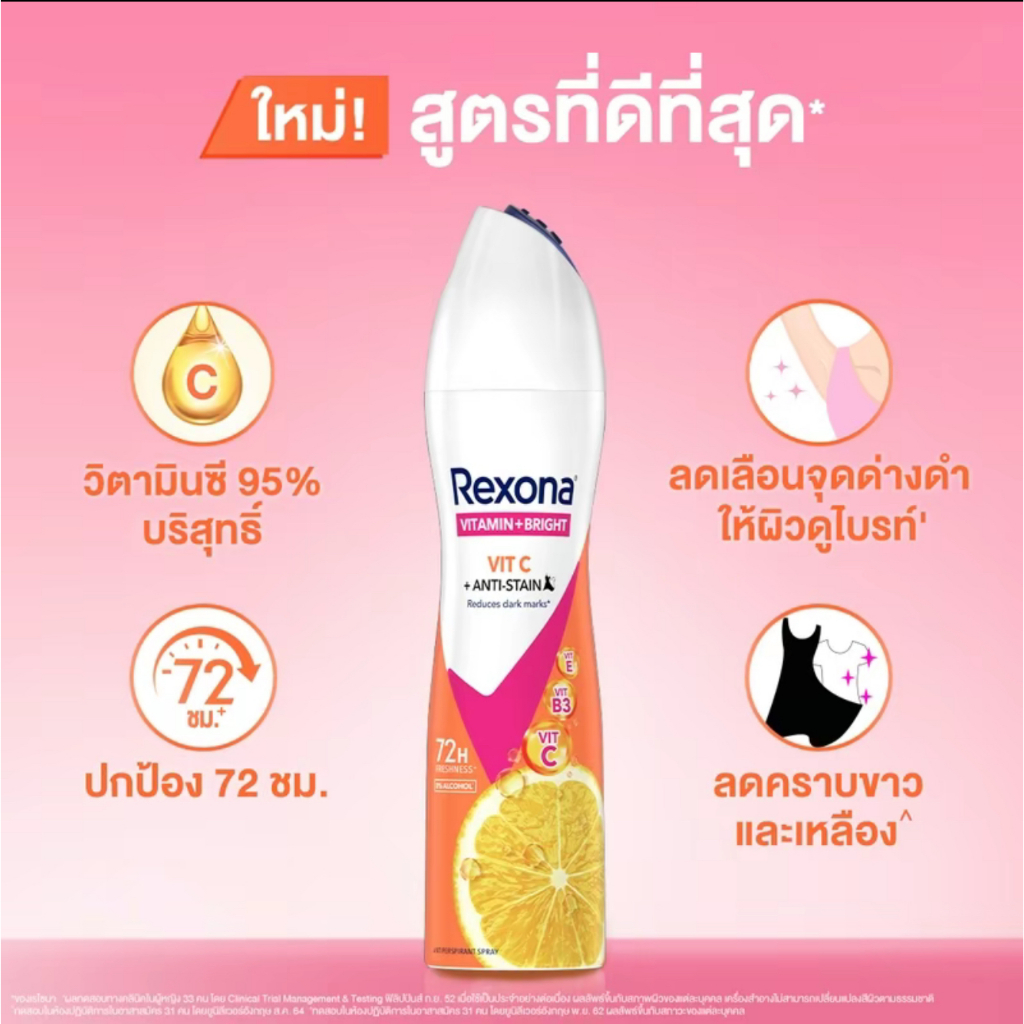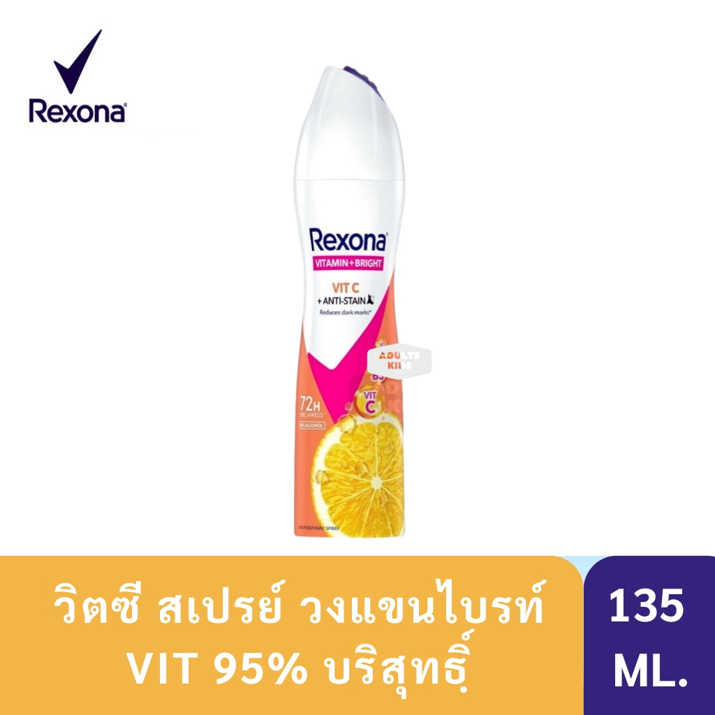 ลดเพิ่ม 30% 🔥 Rexona Spray Vitamin + Bright Vit C + Anti-Stain Antiperspirant 135 Ml. สเปรย์ลดเหงื่อ
