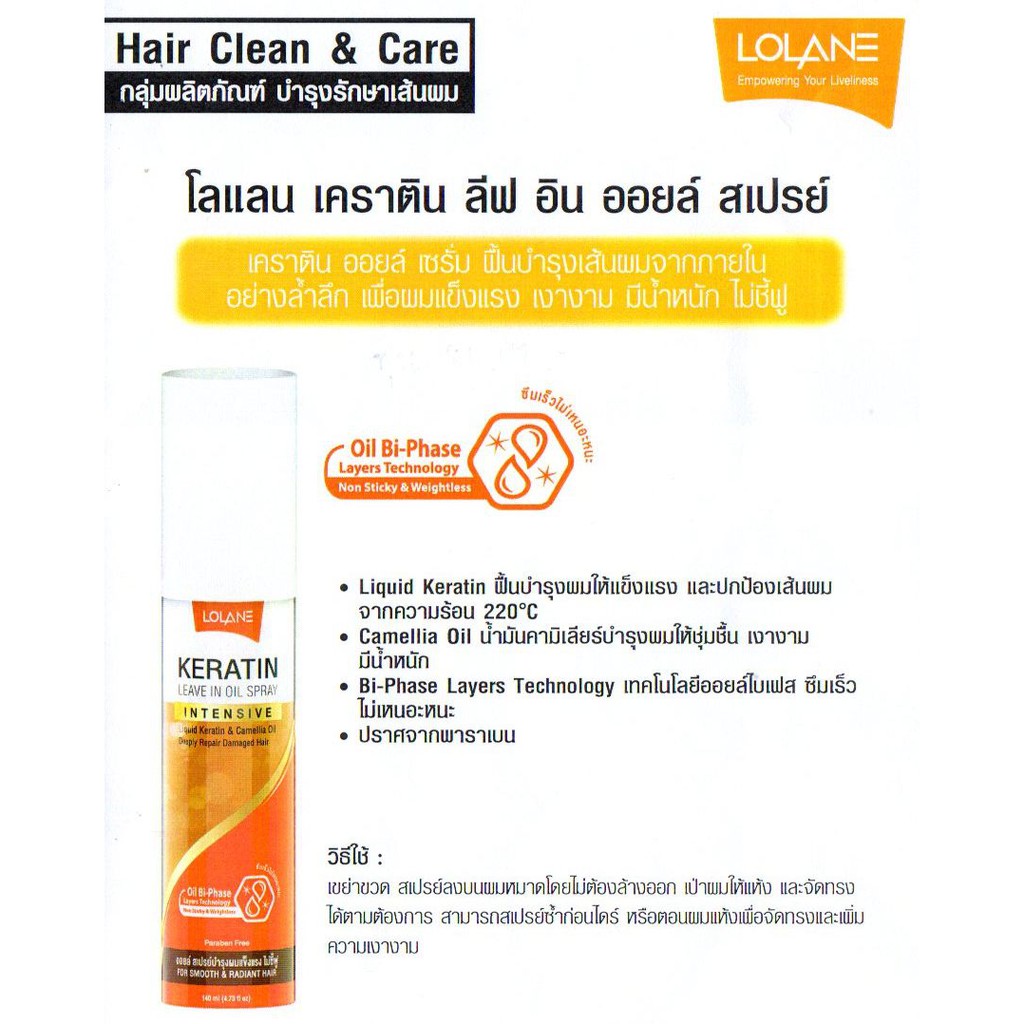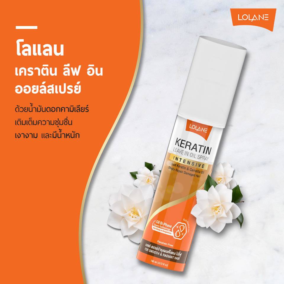 Lolane โลแลน เคราติน ลีฟ อิน ออยล์ สเปรย์ 140 มล. ฟื้นบำรุงผมเสีย ปกป้องความร้อน ไม่เหนียว
