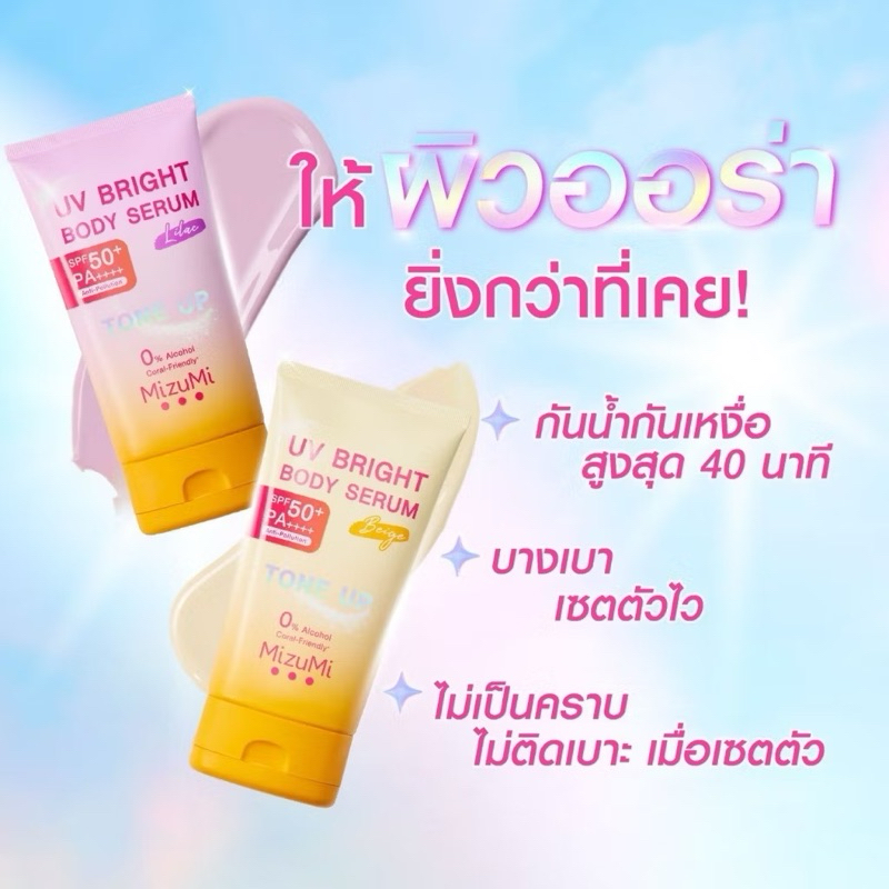 ส่งฟรี/มีไลฟ์ MizuMi Bright Body Serum (180 ml) เซตเซรั่มกันแดดทาผิวกาย เบาสบาย ซึมไว