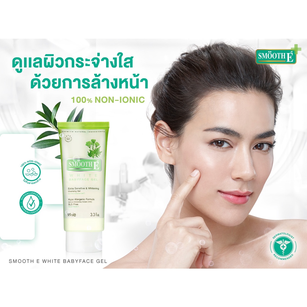 [แพ็ค 2] Smooth E เจลล้างหน้า สูตรไม่มีฟอง ไม่ทิ้งสารตกค้าง White Babyface Gel 3.3 Oz. ผิวขาวกระจ่างใส อ่อนโยน สมูทอี