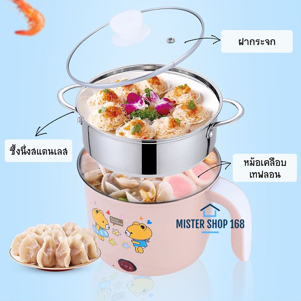 (ลูกค้าใหม่ 1 บาท) หม้อไฟฟ้า 3in1 อเนกประสงค์ หุงข้าว ต้ม ผัด ทอด อุ่น ตุ๋น นึ่ง ด้ามจับน่ารัก