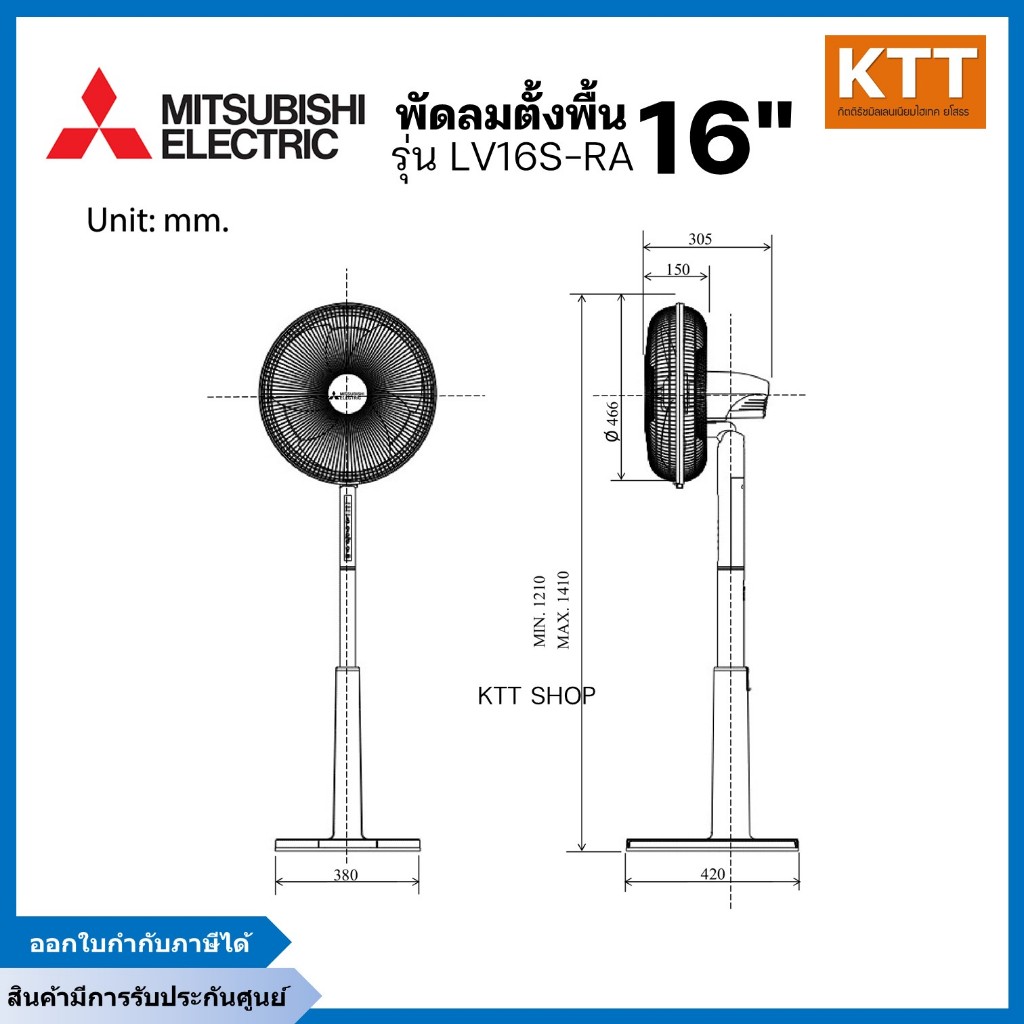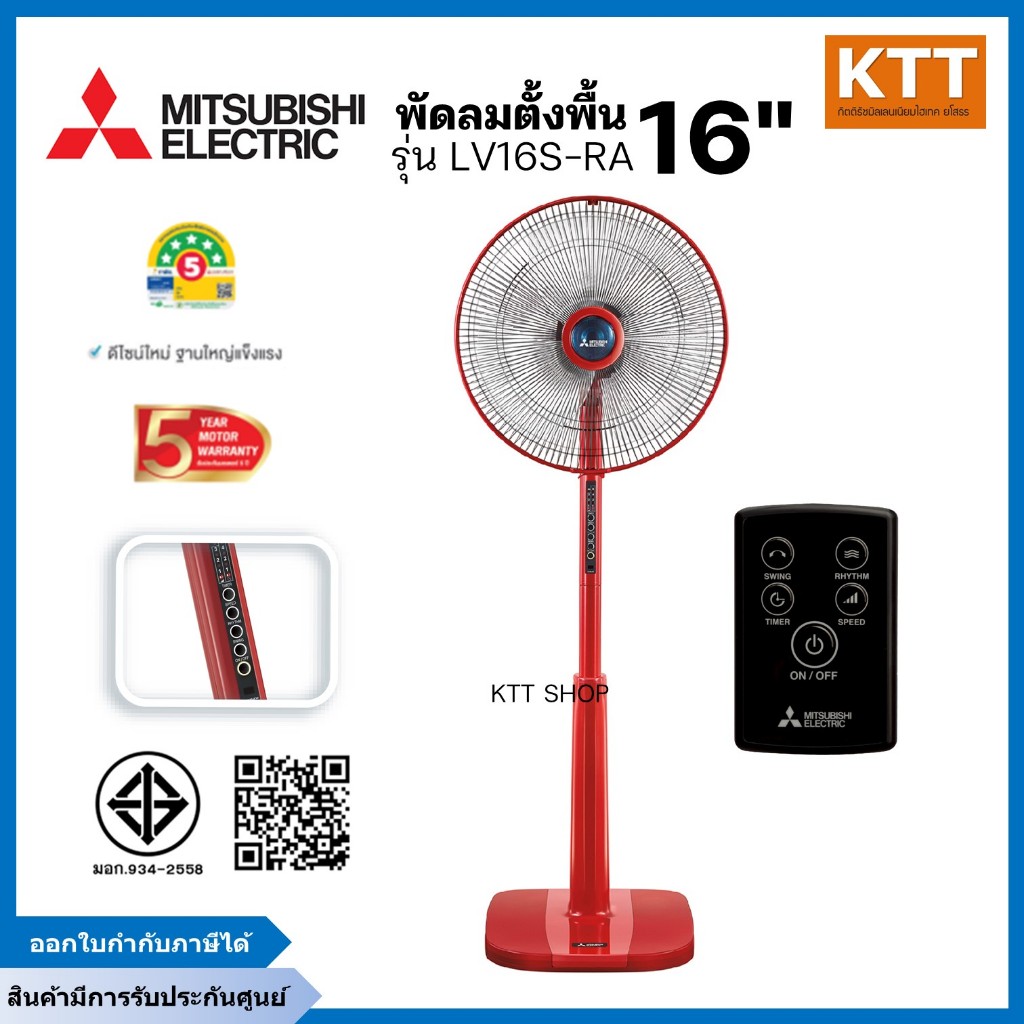 พัดลมตั้งพื้น MITSUBISHI มิตซูบิชิ LV16S-RA (มีรีโมท,ตั้งเวลาเปิด-ปิดได้) ใบพัด 16 นิ้ว คละสี