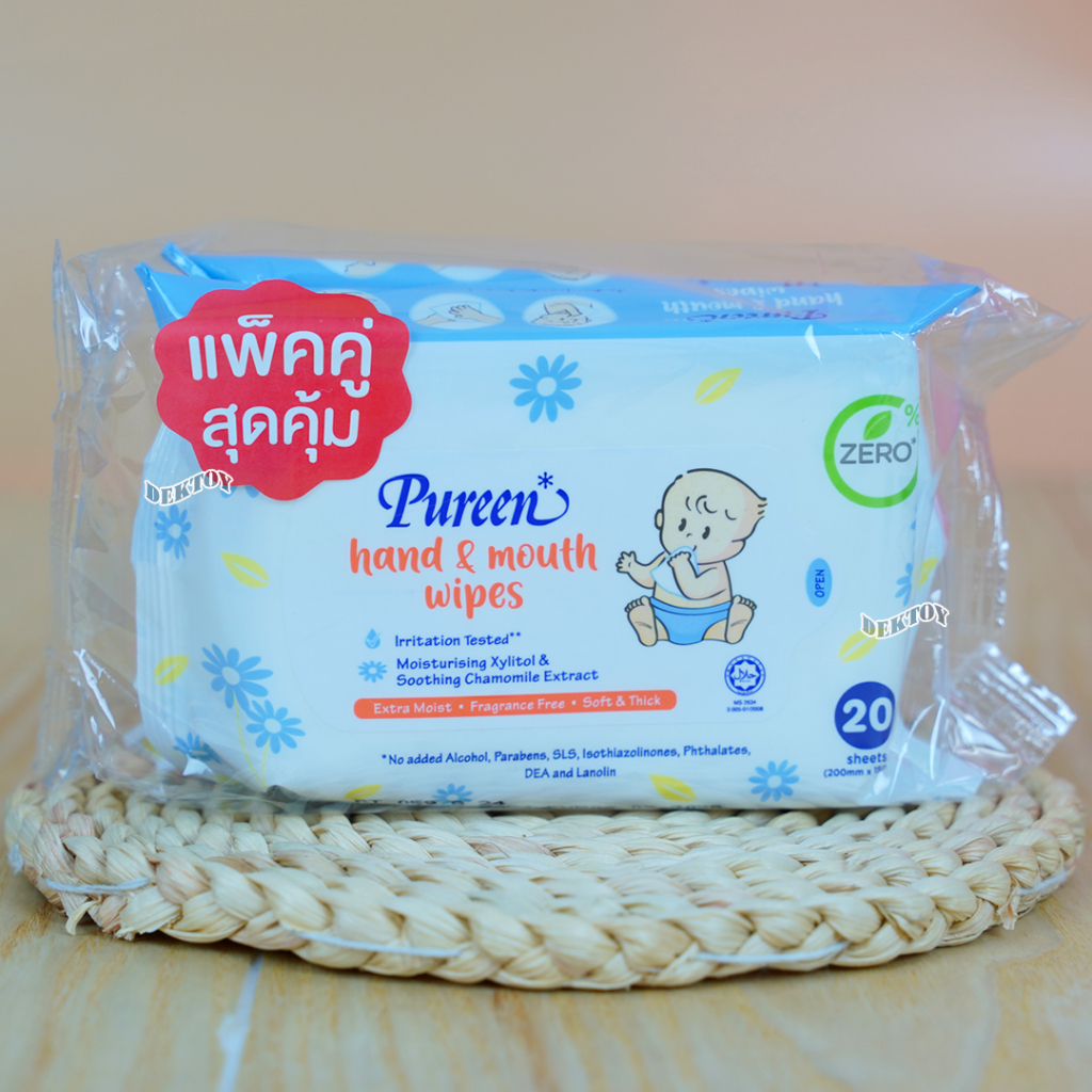 Pureen เพียวรีน ทิชชู่เปียก แฮนด์ แอนด์ เม้าท์ไวพส์ ผ้าเช็ดทําความสะอาดมือและปาก 1ห่อ20แผ่น