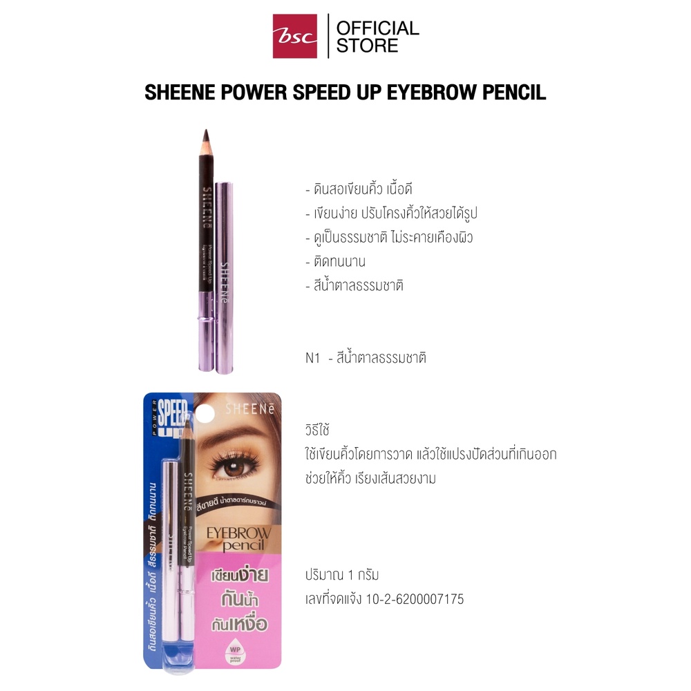 SHEENE POWER SPEED UP EYEBROW PENCIL 1 g. ดินสอเขียนคิ้ว เนื้อดี เขียนง่าย ปรับโครงคิ้วให้สวยได้รูป ดูเป็นธรรมชาติ