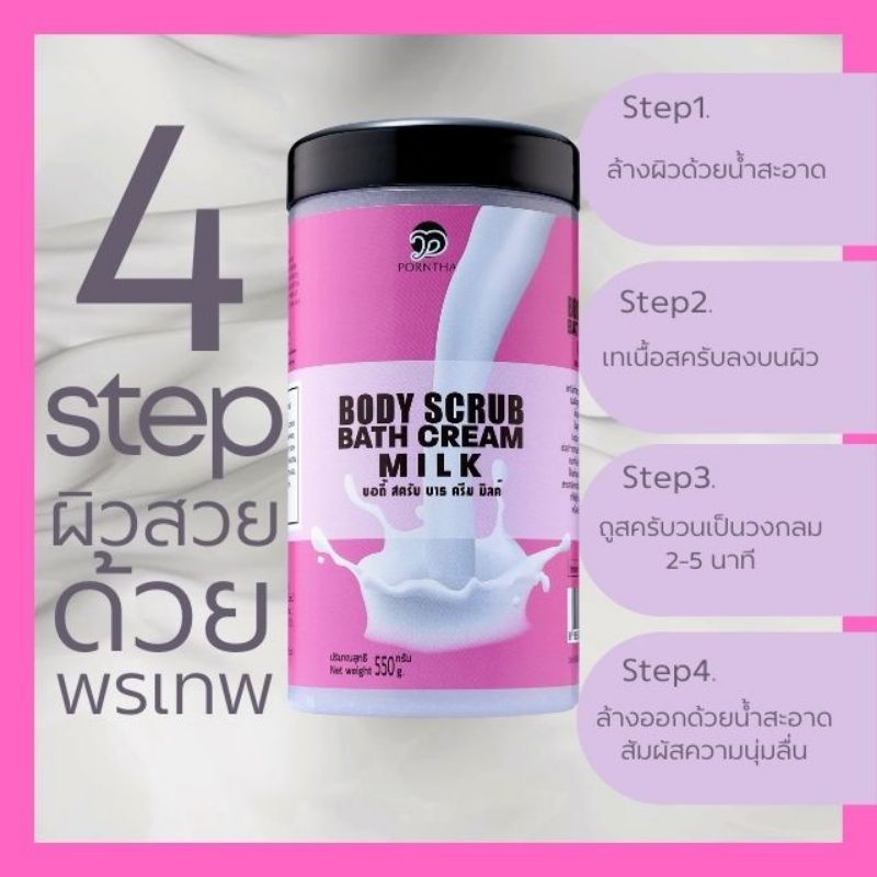 PORNTHAP Body Scrub Milk 550g สครับ พรเทพ สครับขัวผิว สูตรน้ำนม ผิวเนียนนุ่ม กระจ่างใส