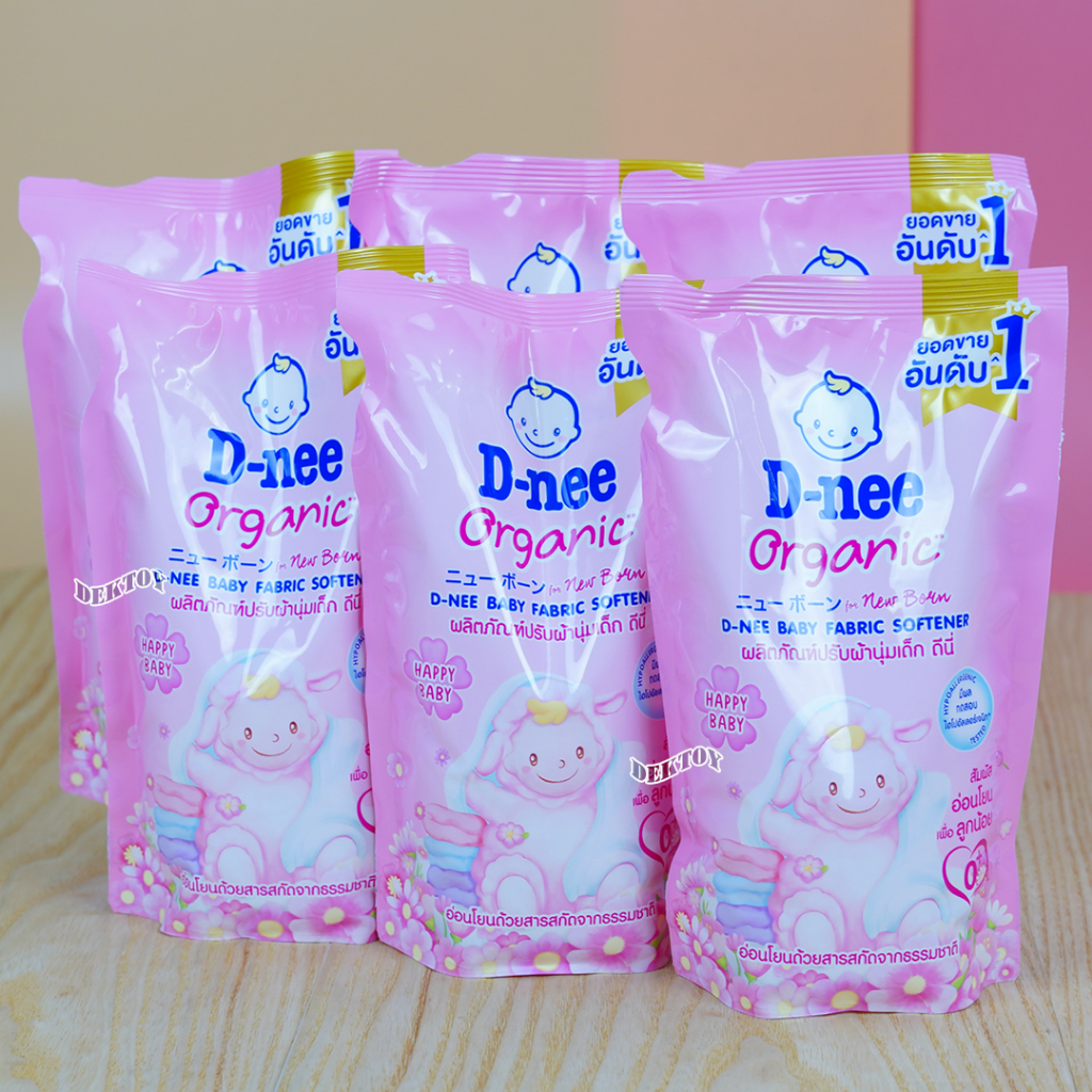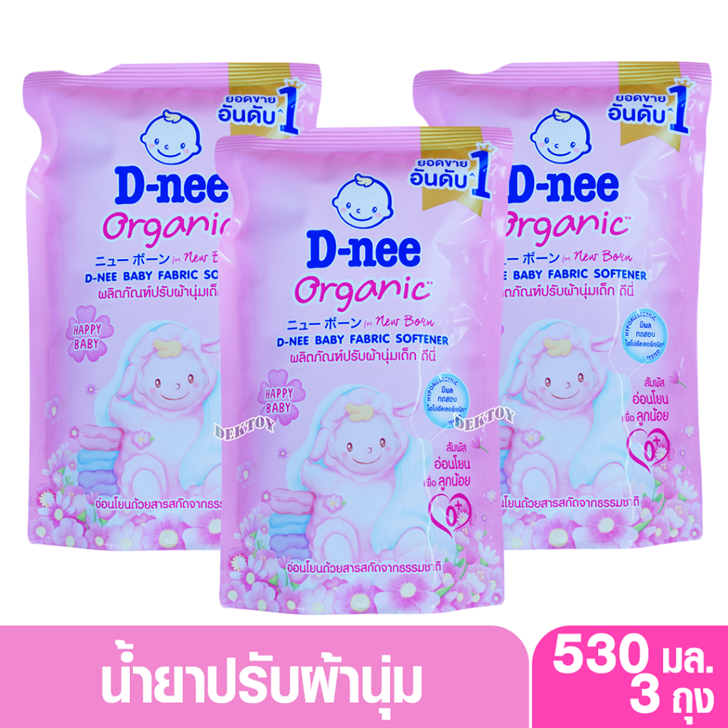 3 ถุง D-nee organic ดีนี่ น้ำยาปรับผ้านุ่มเด็ก กลิ่น Happy Baby 530 มล. สีชมพู