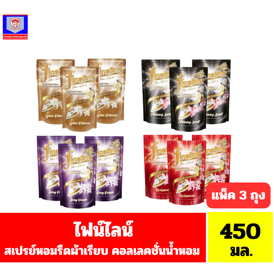 ไฟน์ไลน์ สเปรย์หอมรีดผ้าเรียบ คอลเลคชั่นน้ำหอม สูตรรีดลื่น เรียบเร็วขึ้น100% ขนาด 450 มล.(แพ็ค 3 ถุง)