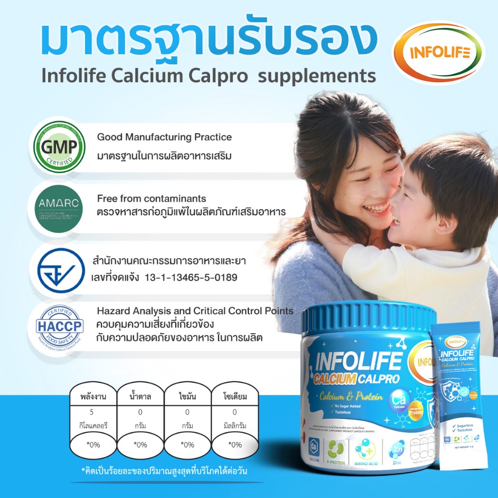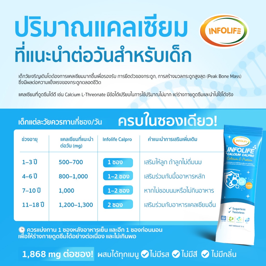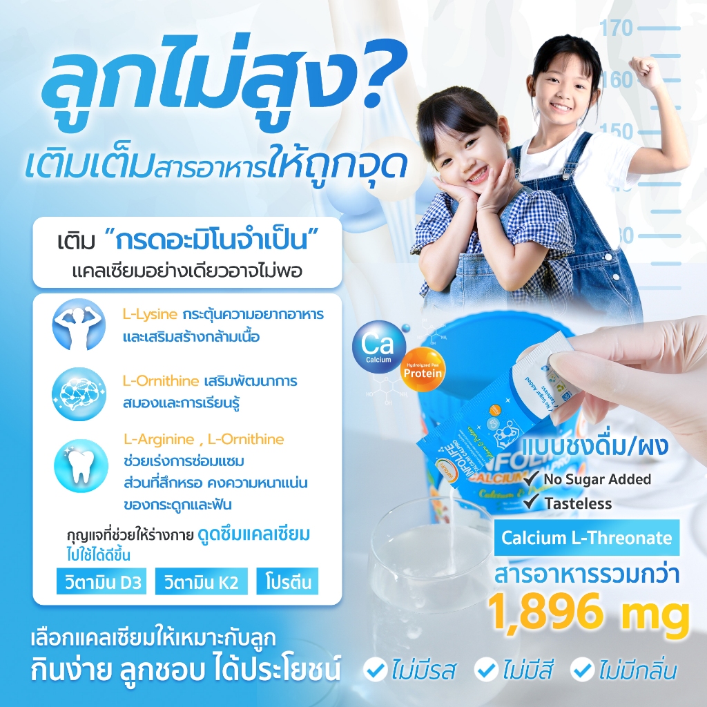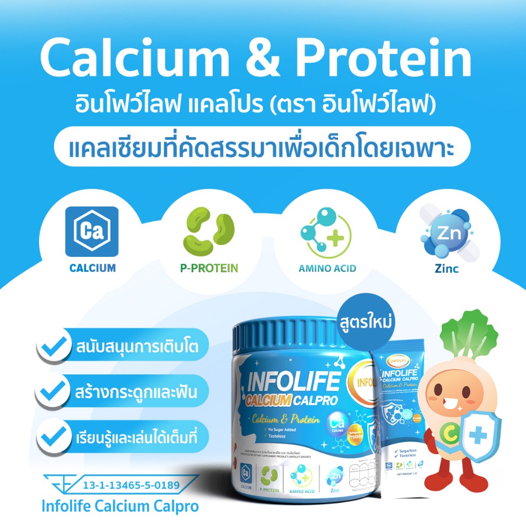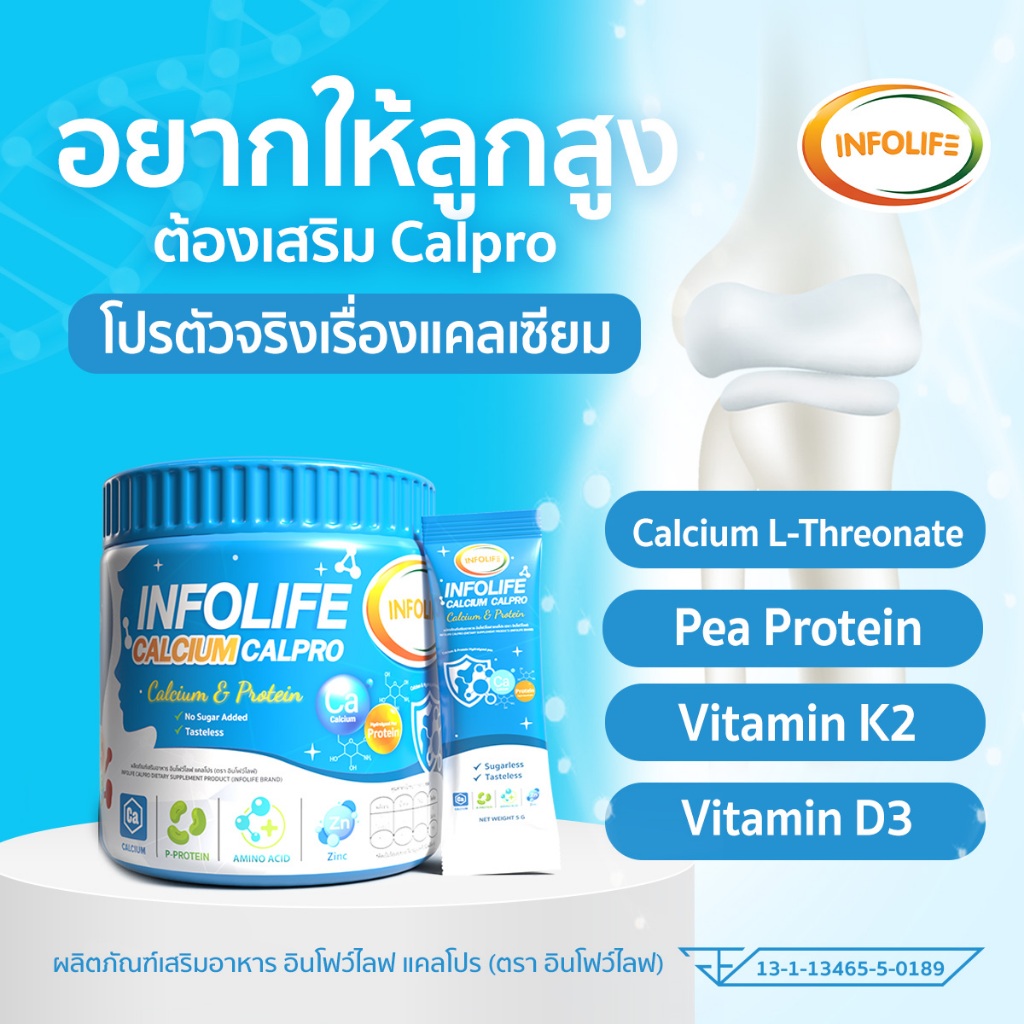 (ยกลัง 10 กระปุก) อินโฟว์ไลฟ แคลเซียมใสและโปรตีน เพิ่มส่วนสูง เสริมมวลกล้ามเนื้อ สำหรับเด็ก ส่งฟรี