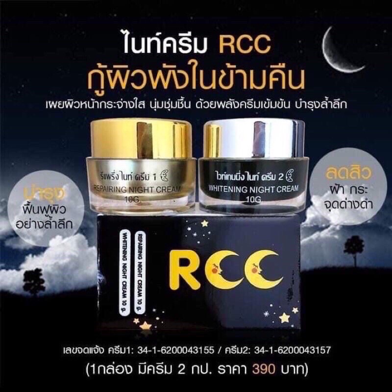 แท้💯% RCC Cream RCC Night Cream rcc ครีม rcc ไนท์ครีม 1 set มี 2 กระปุก(กระปุกละ 10 กรัม)