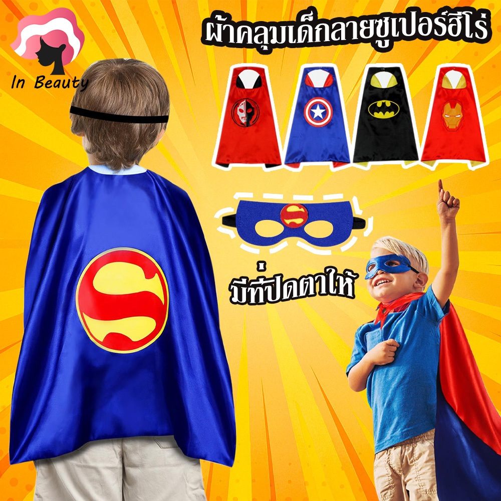 In Beauty งานปาร์ตี้ฮาโลวีน 🎃Halloween🎃 เสื้อคลุมซูเปอร์ฮีโร่ ชุดแฟนซีการ์ตูนสำหรับเด็กอายุ 3–10 ปี Hero's Cloak