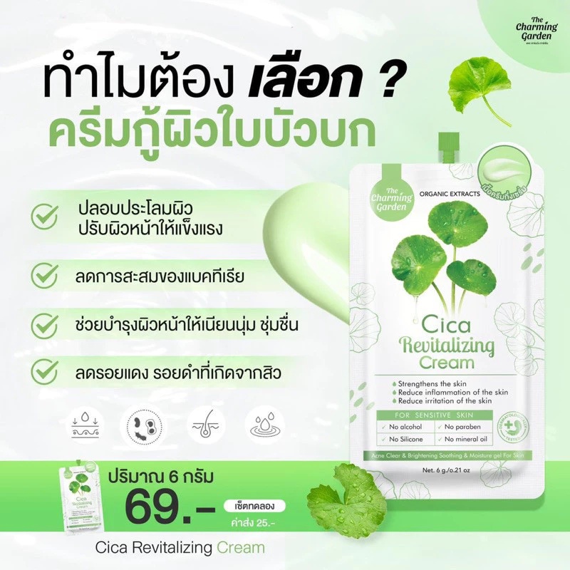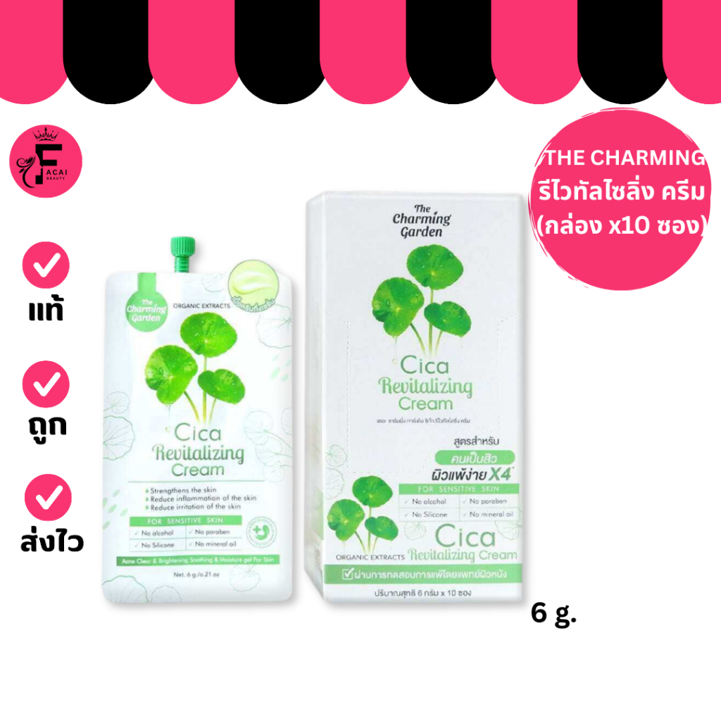 (กล่อง 10 ซอง) THE CHARMING ครีมใบบัวบก เดอะ ชาร์มมิ่ง การ์เด้น (ปริมาณ 6 กรัม)
