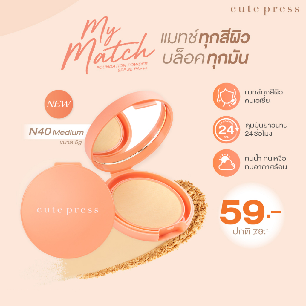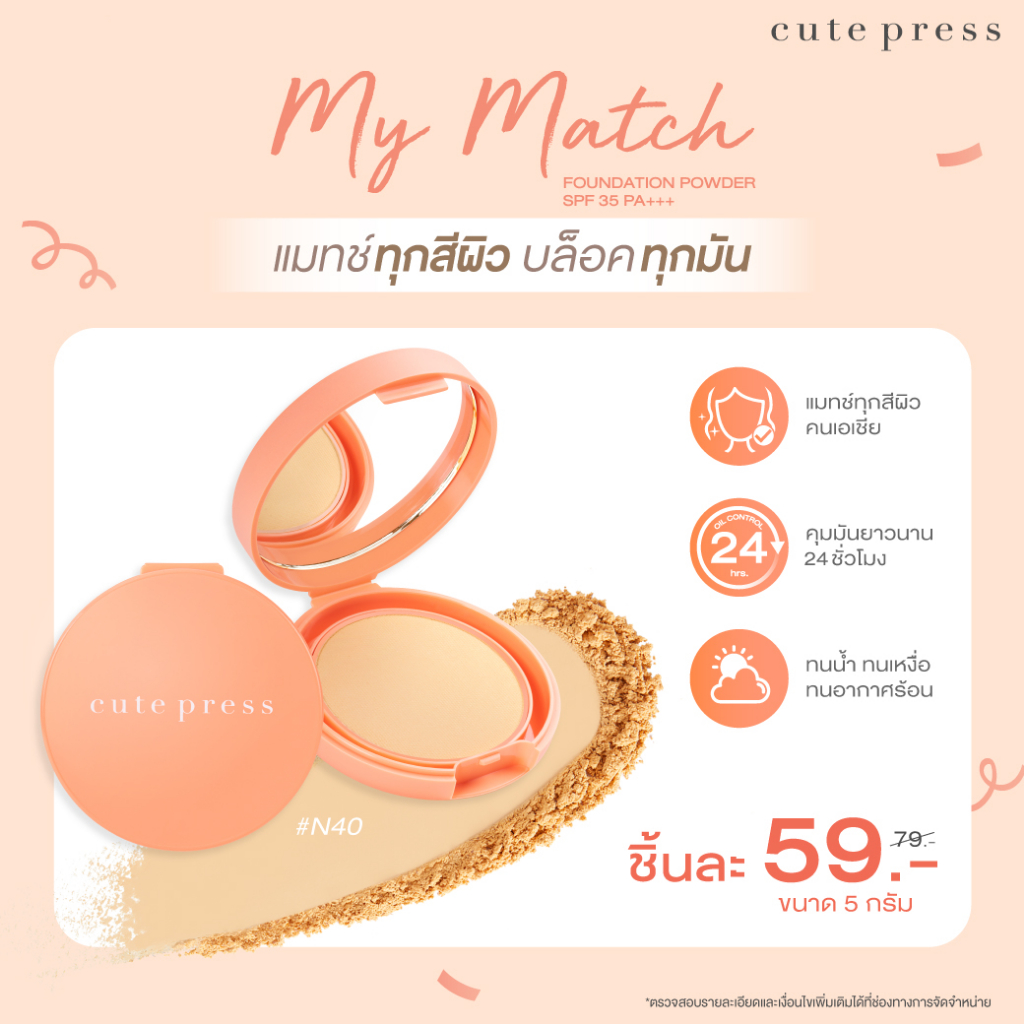 Cute Press My Match Foundation Powder SPF35 PA++++ [มีให้เลือก 2 เฉดสี] แป้งพัฟ แป้ง กันแดด