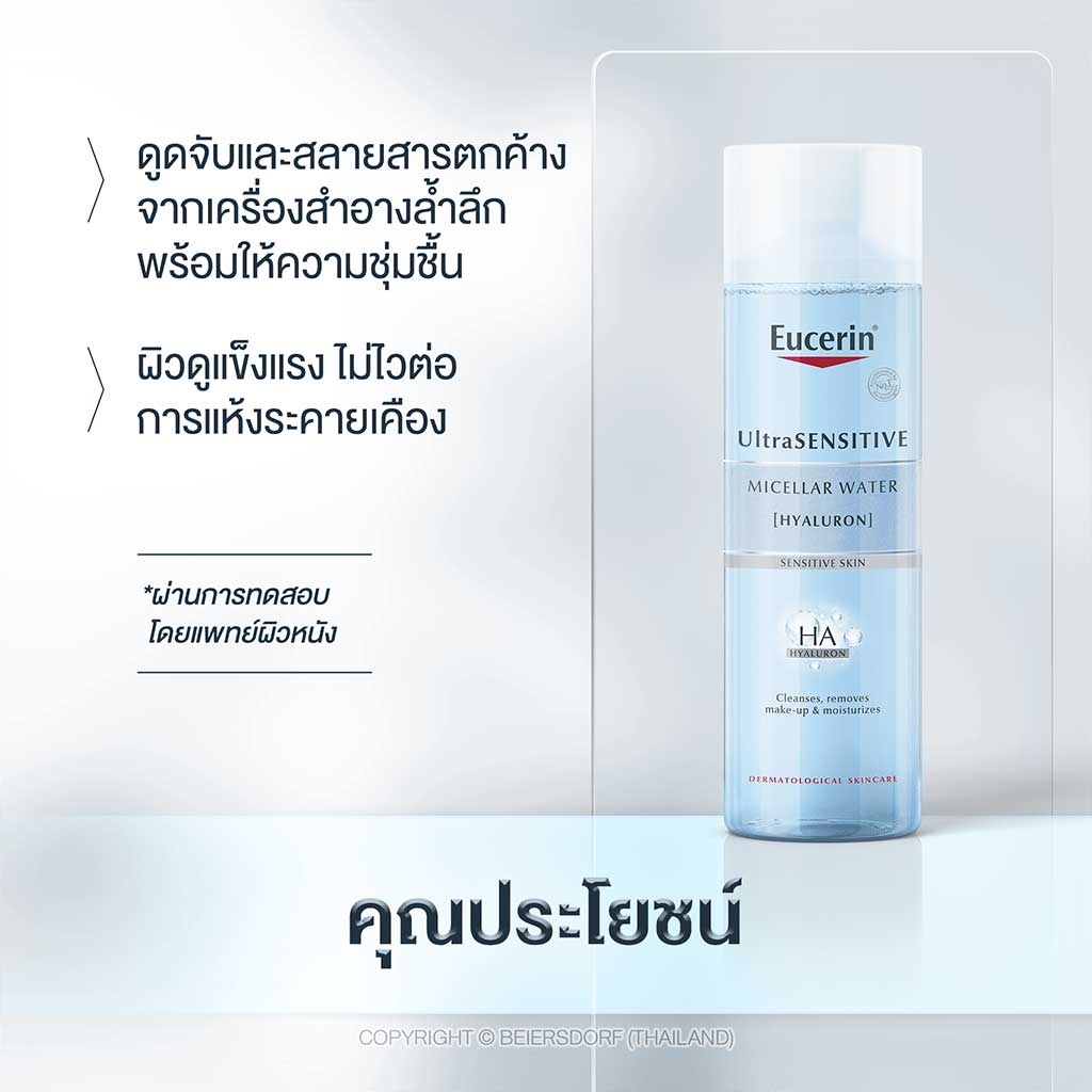 EUCERIN Ultra Sensitive Hyaluron Micellar Water 200 ml. ยูเซอริน ไมเซลล่า เช็ดล้างเครื่องสำอางหมดจด สำหรับผิวแห้ง บอบบาง