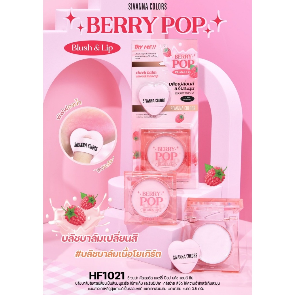 🔥แท้/ถูกที่สุด/ไลฟ์ทุกวัน🔥(HF1021) Sivanna Berry Pop Blush & Lip บลัชออนเนื้อบาล์มเปลี่ยนสี ใช้ได้ทั้งแก้ม ปาก 3.8g.
