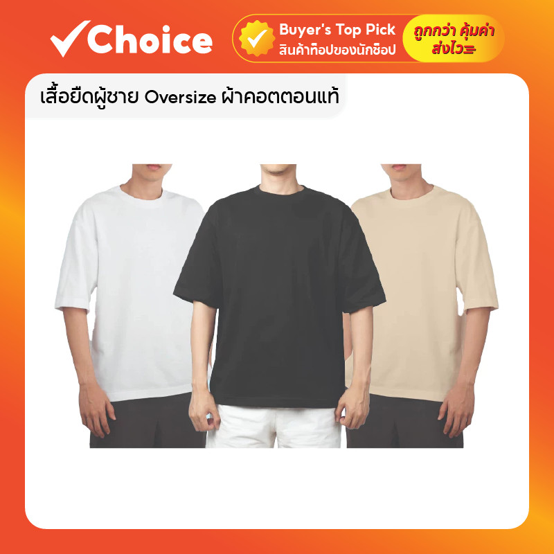เสื้อยืดผู้ชาย Oversize ผ้าคอตตอนแท้ 100% คอกลม แขนสั้น มีหลายสี ไซส์ M-2XL