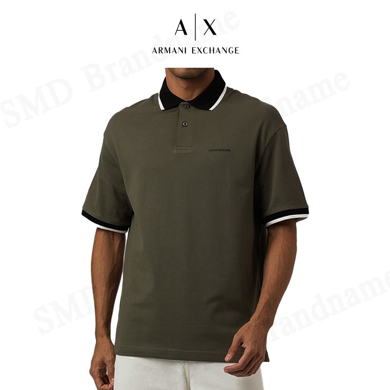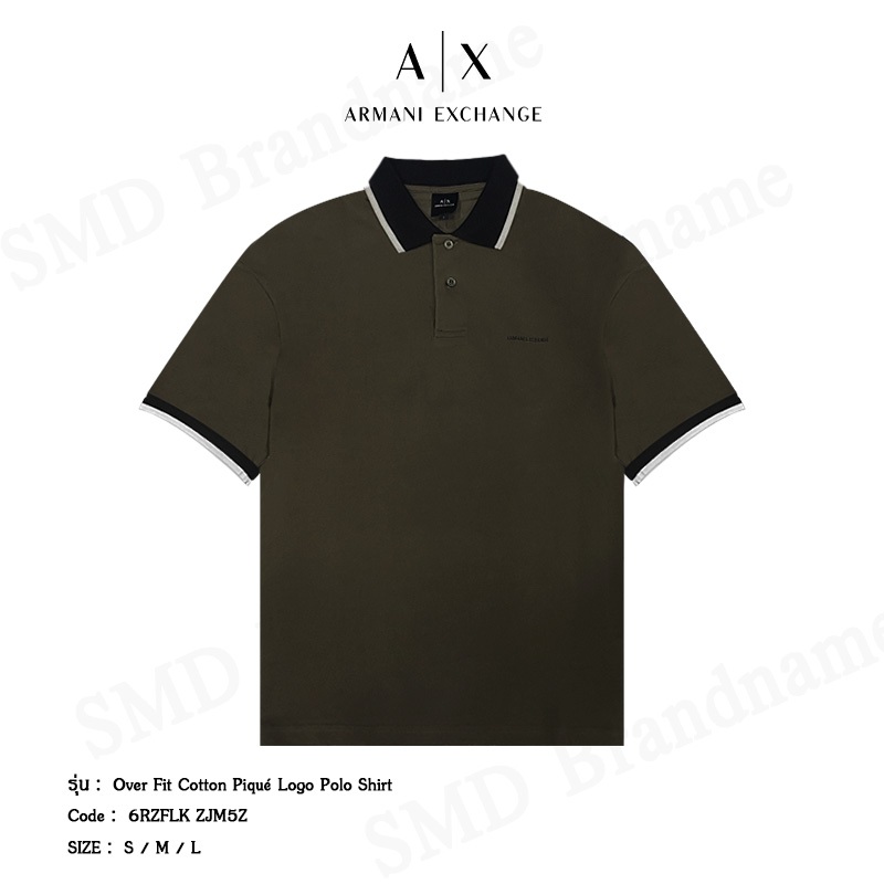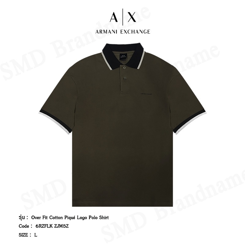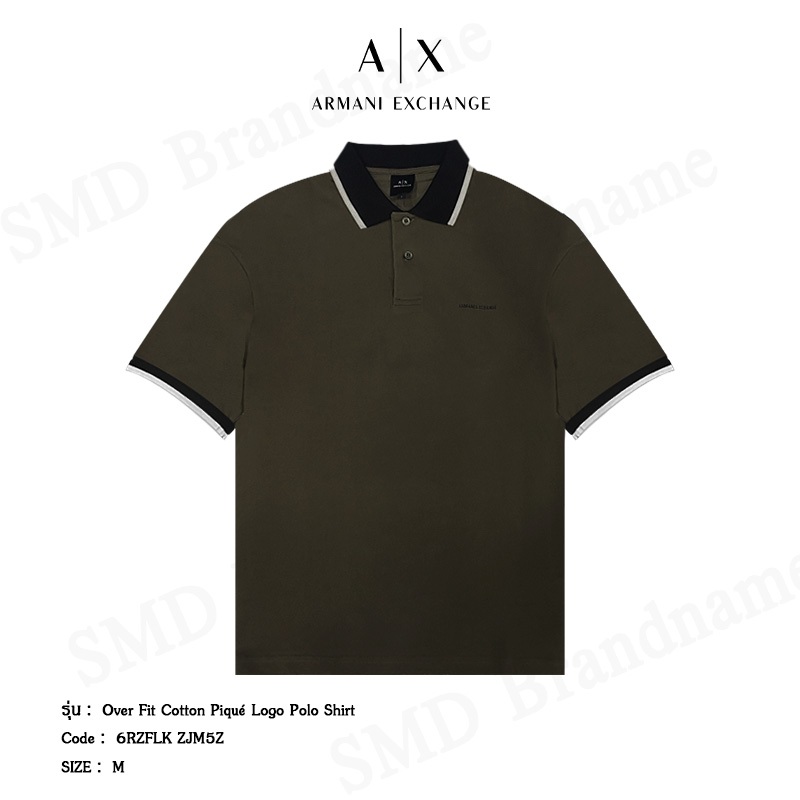 Armani Exchange เสื้อโปโลผู้ชาย รุ่น Over Fit Cotton Piqué Logo Polo Shirt Code: 6RZFLK ZJM5Z