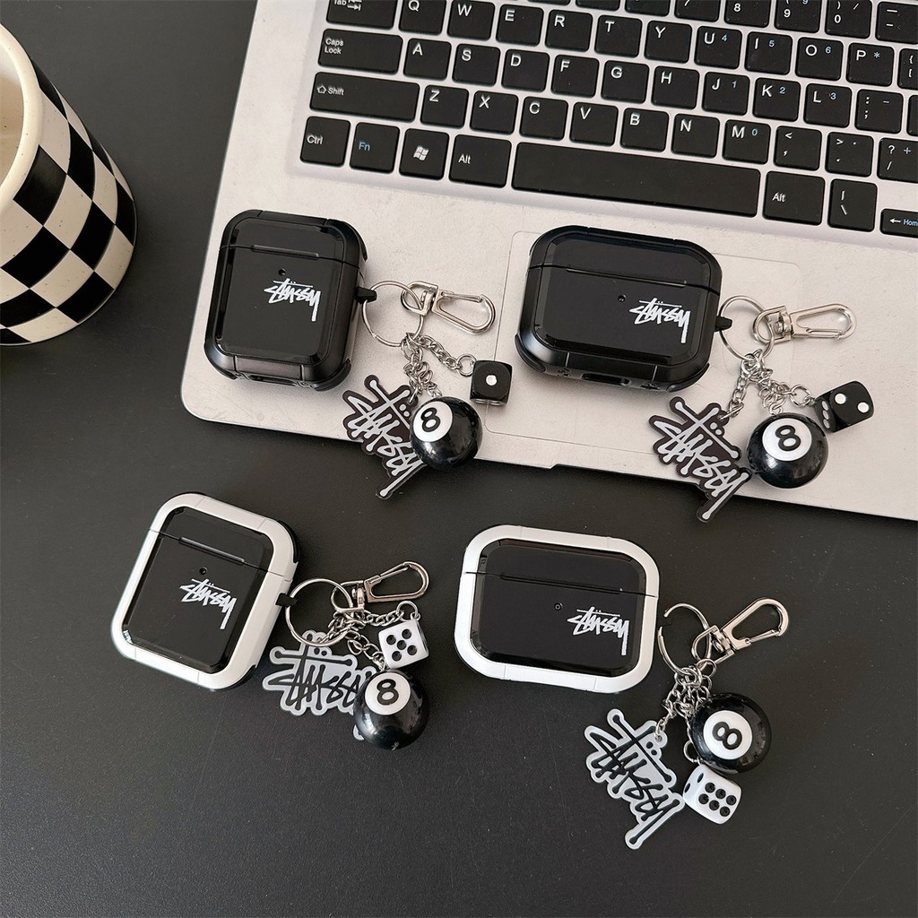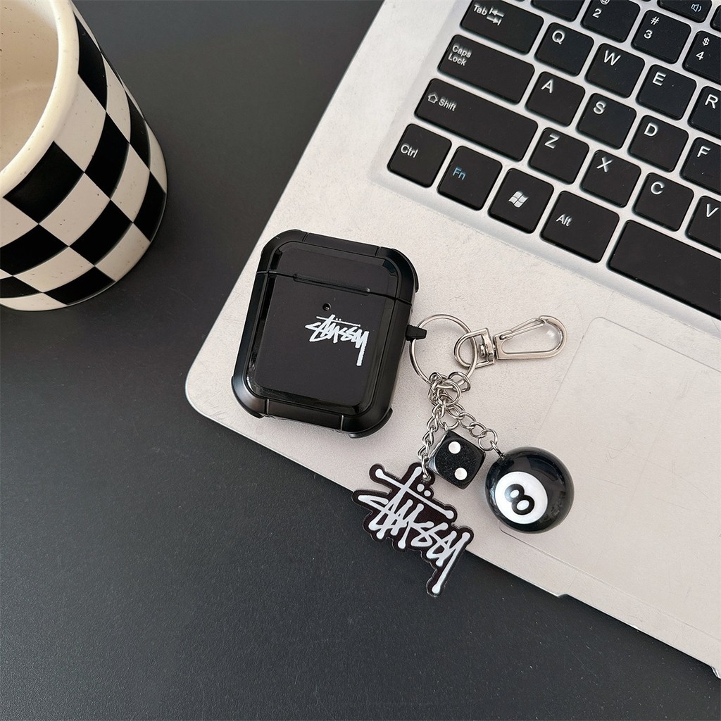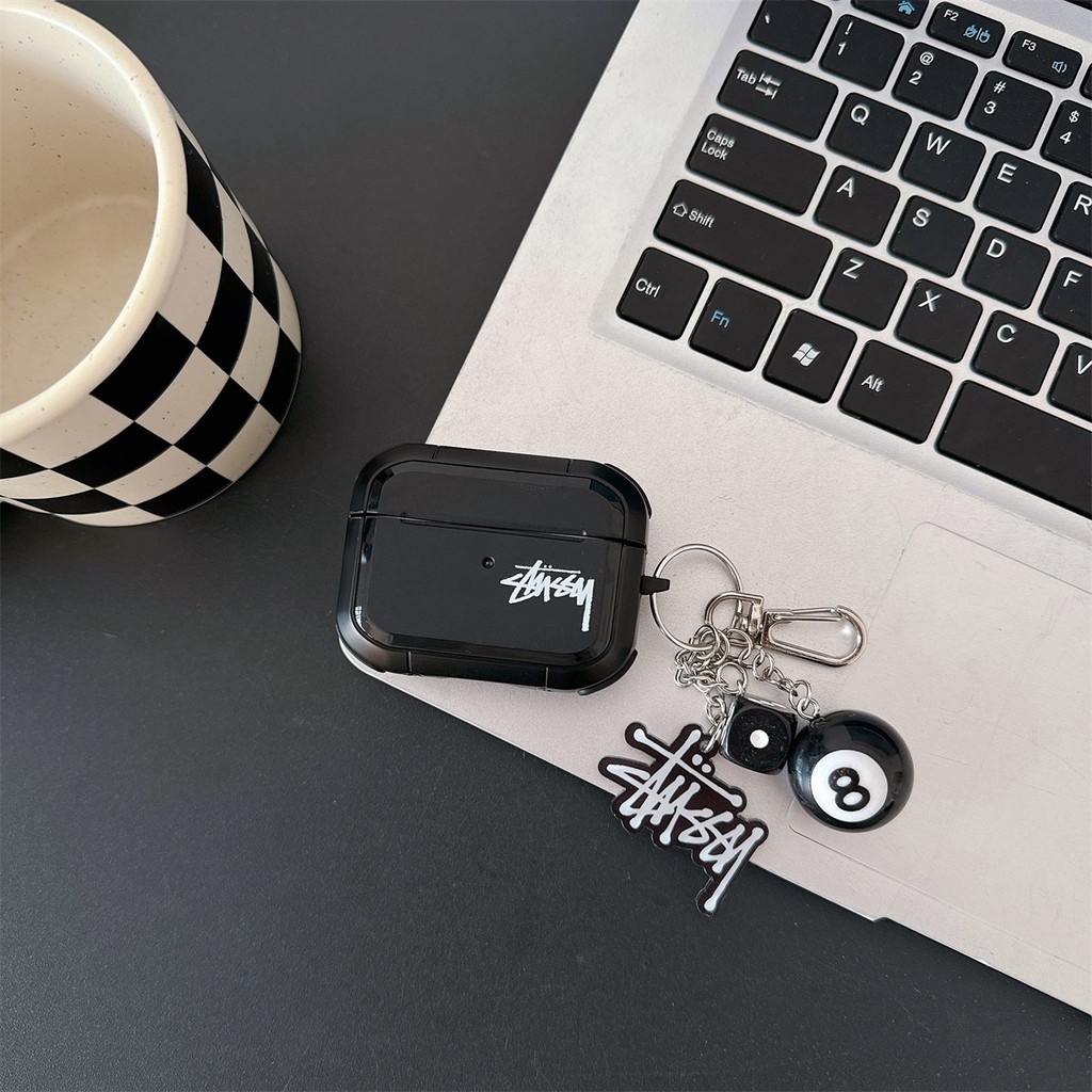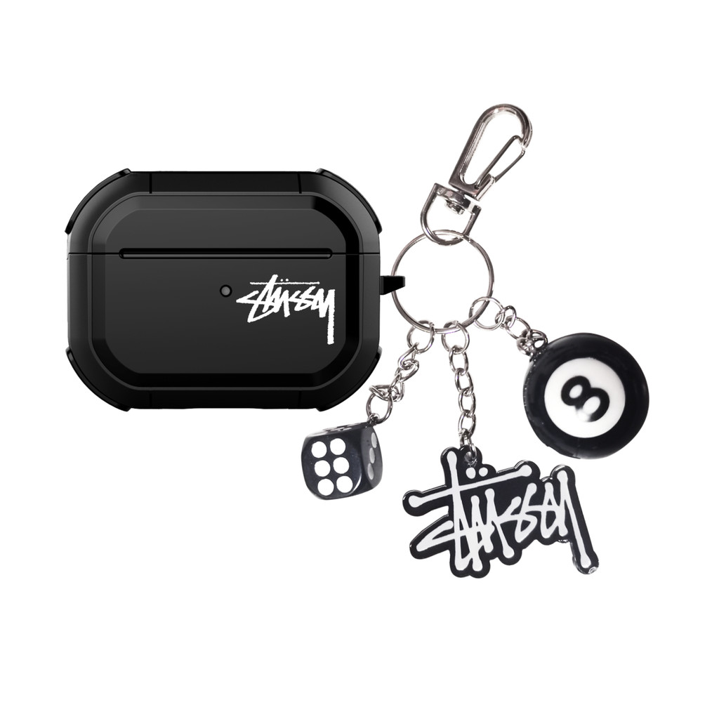 Armor STUSSY ปลอกซิลิโคนพร้อมพวงกุญแจสําหรับ AIRPODS 4 ANC PRO 1/2/3 PRO เคสป้องกัน