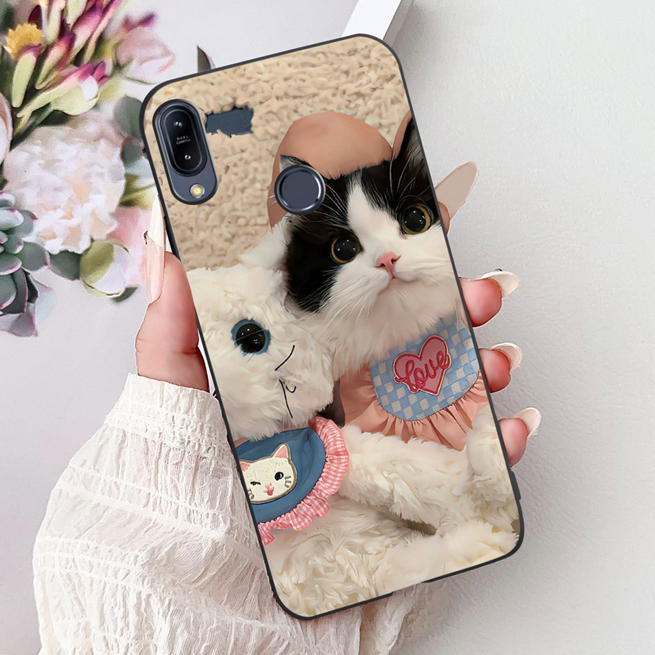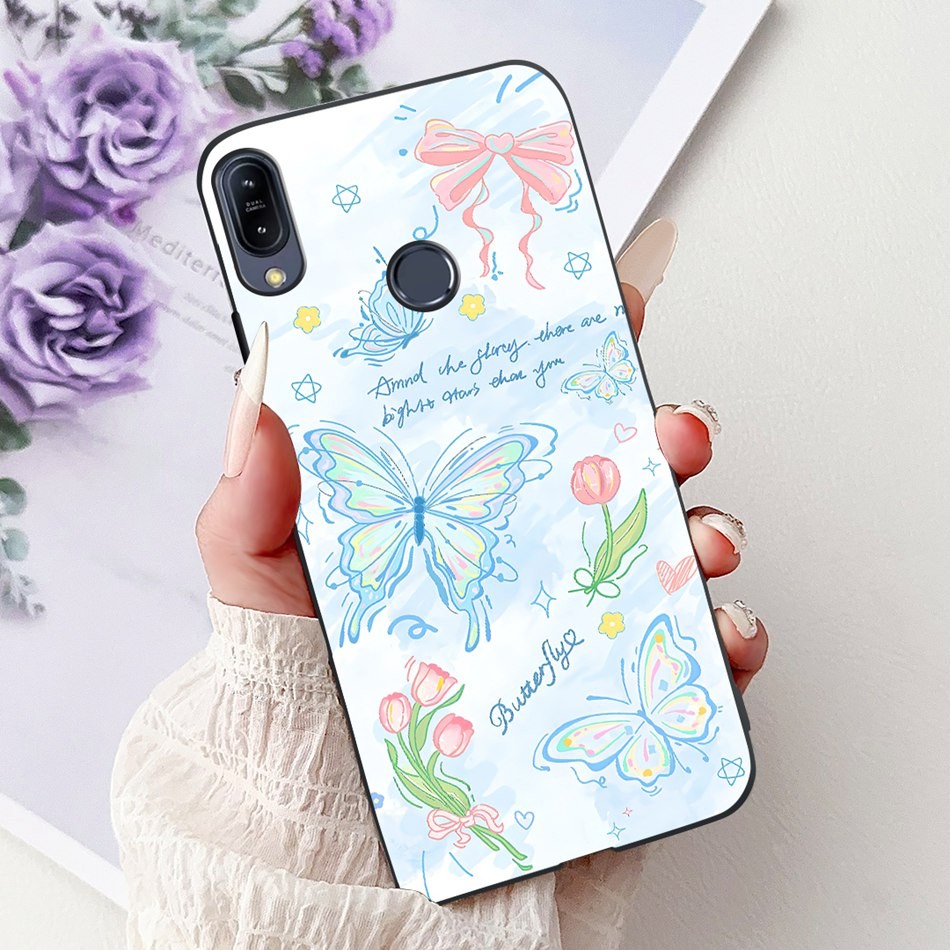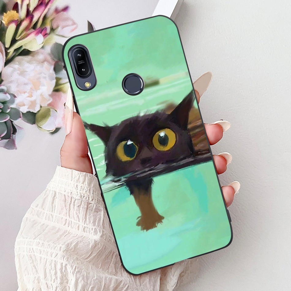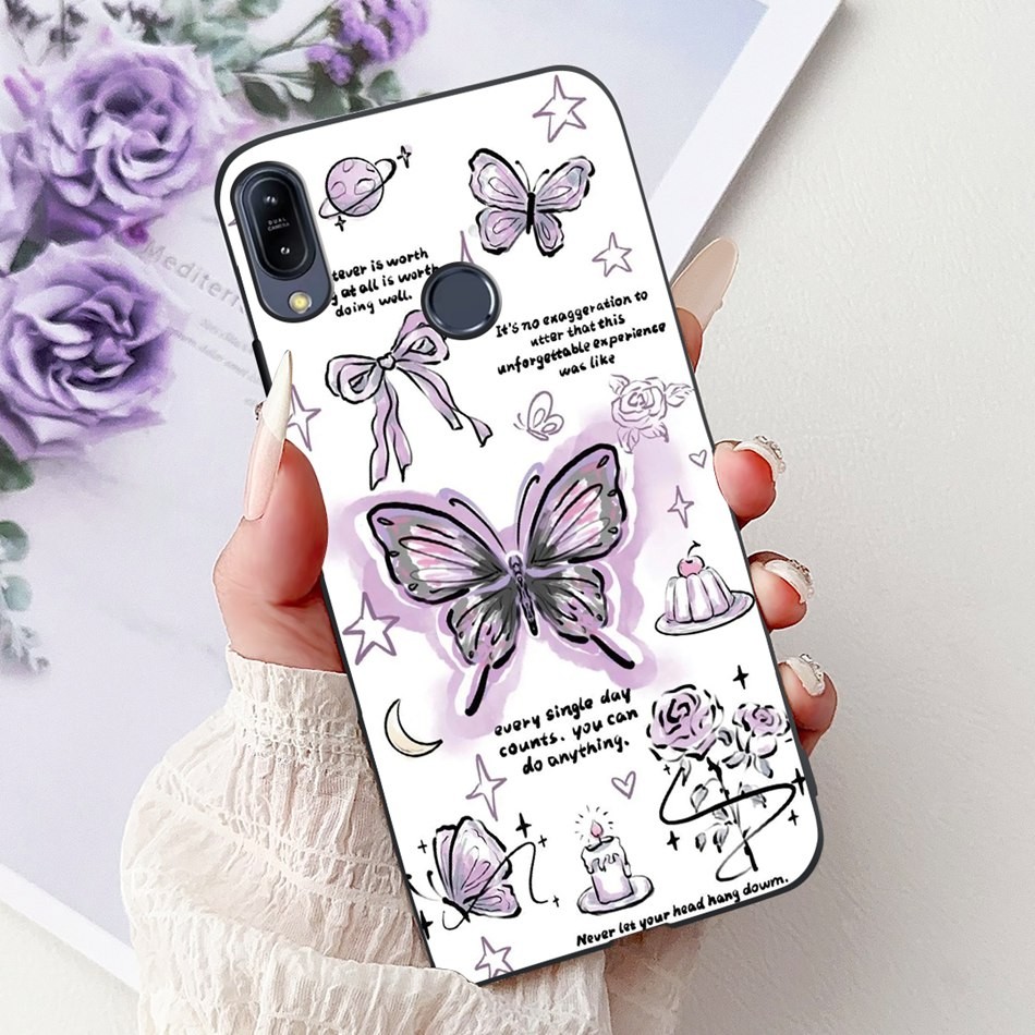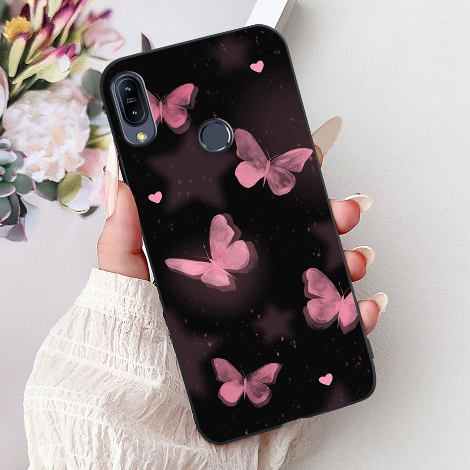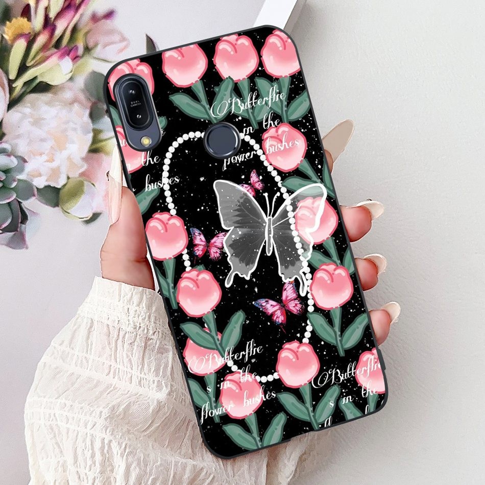 Asus Zenfone Max Pro M1 ZB602KL ZB555KL X00PD X00TD แมวน่ารักผีเสื้อดอกไม้รูปแบบซิลิโคนสีดําเคสโทรศัพท์ TPU นุ่ม