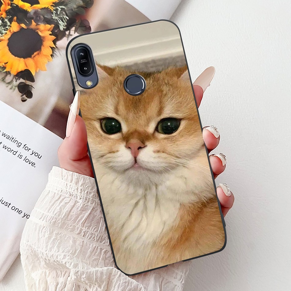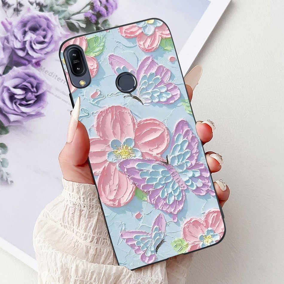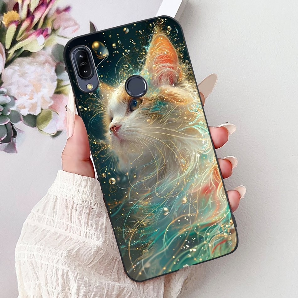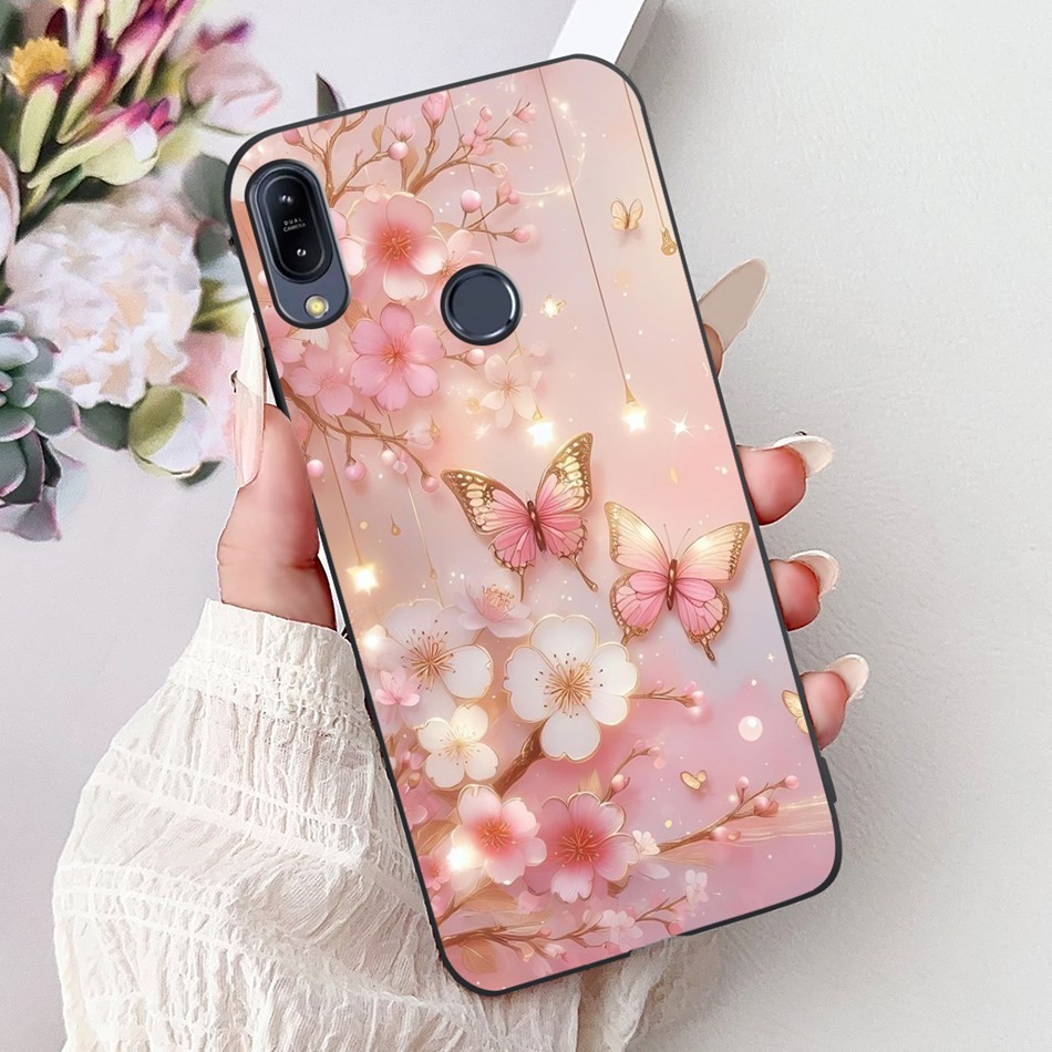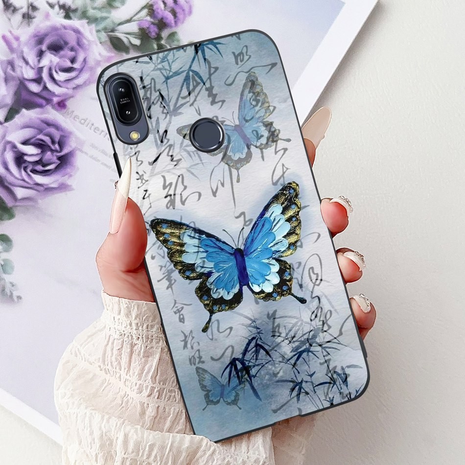 Asus Zenfone Max Pro M1 ZB602KL ZB555KL X00PD X00TD แมวน่ารักผีเสื้อดอกไม้รูปแบบซิลิโคนสีดําเคสโทรศัพท์ TPU นุ่ม