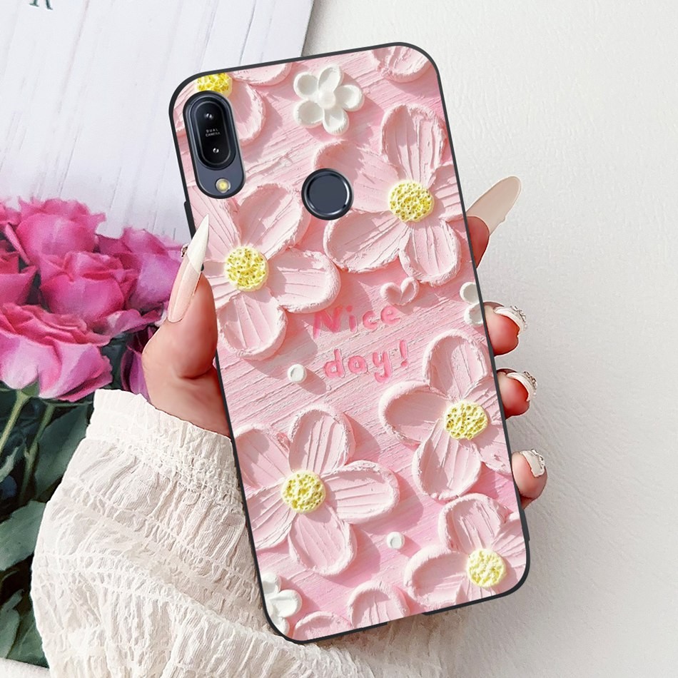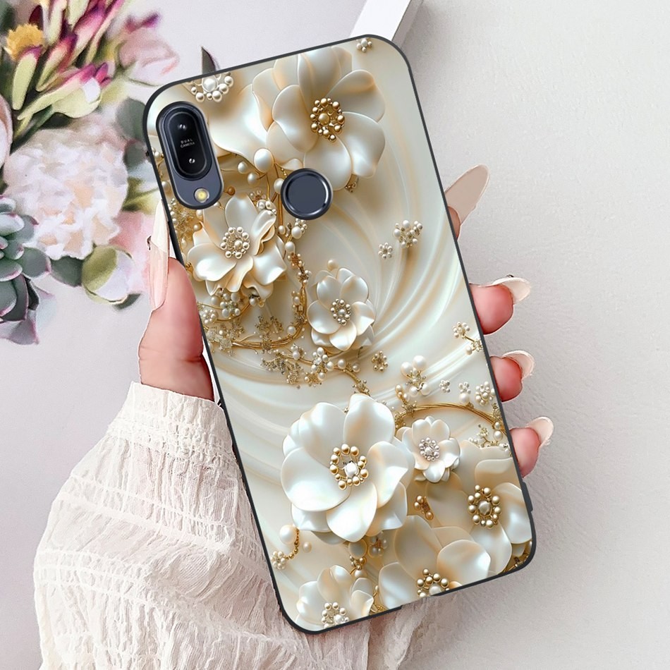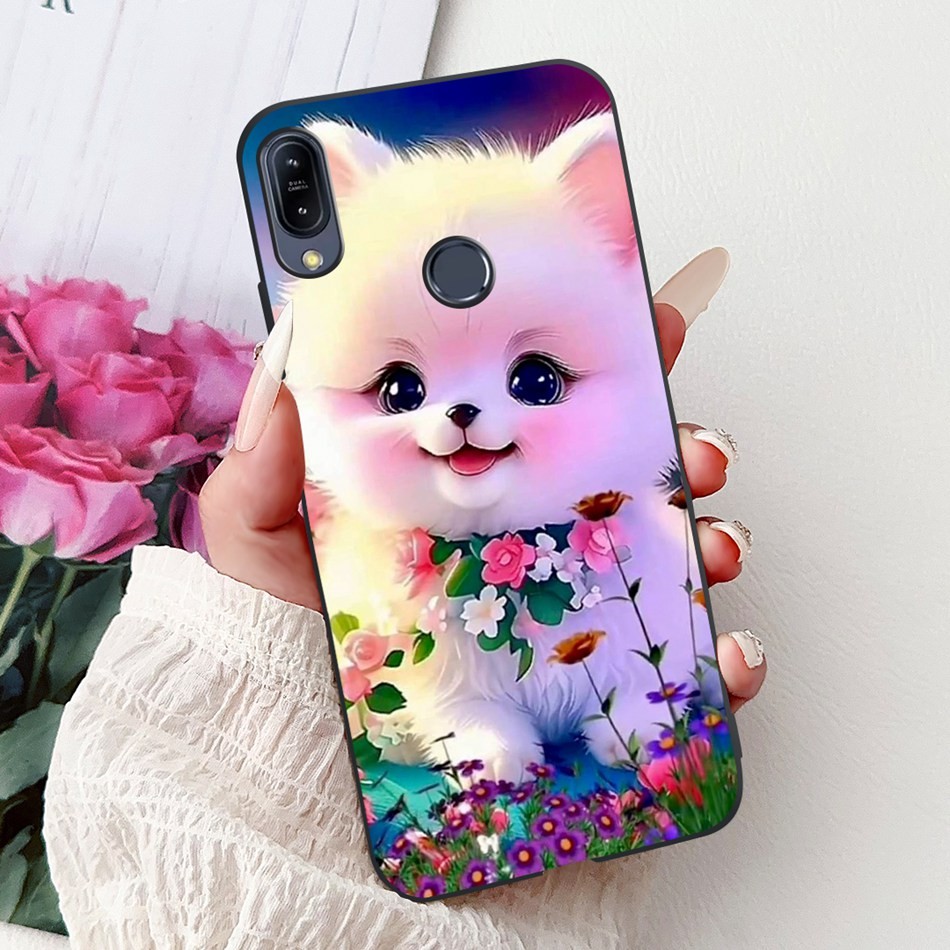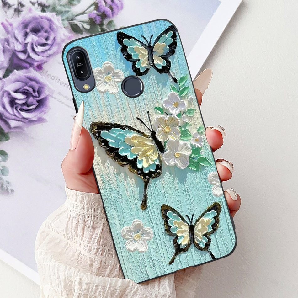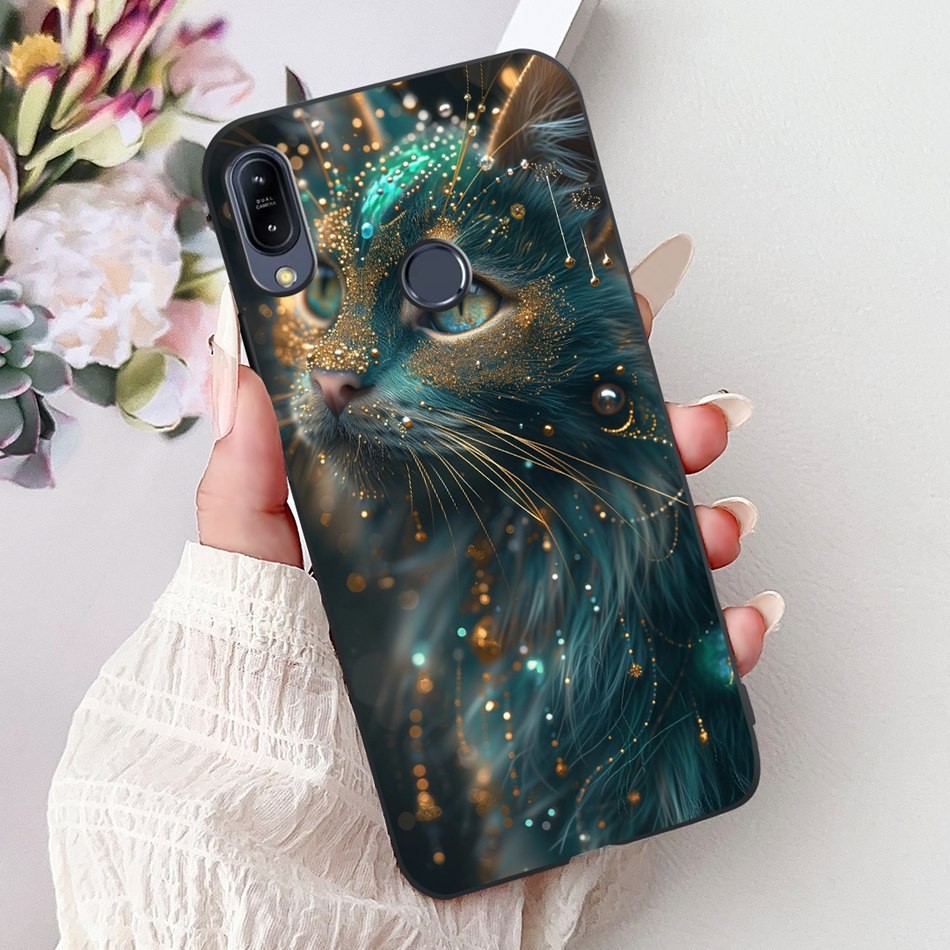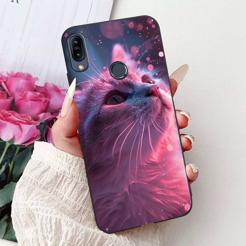 Asus Zenfone Max Pro M1 ZB602KL ZB555KL X00PD X00TD แมวน่ารักผีเสื้อดอกไม้รูปแบบซิลิโคนสีดําเคสโทรศัพท์ TPU นุ่ม