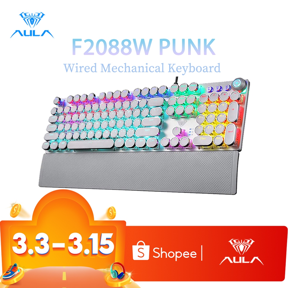 Aula F2088W PUNK คีย์บอร์ดเกมมิ่ง มัลติมีเดีย พร้อมไฟแบ็คไลท์ สําหรับ PC และแล็ปท็อป