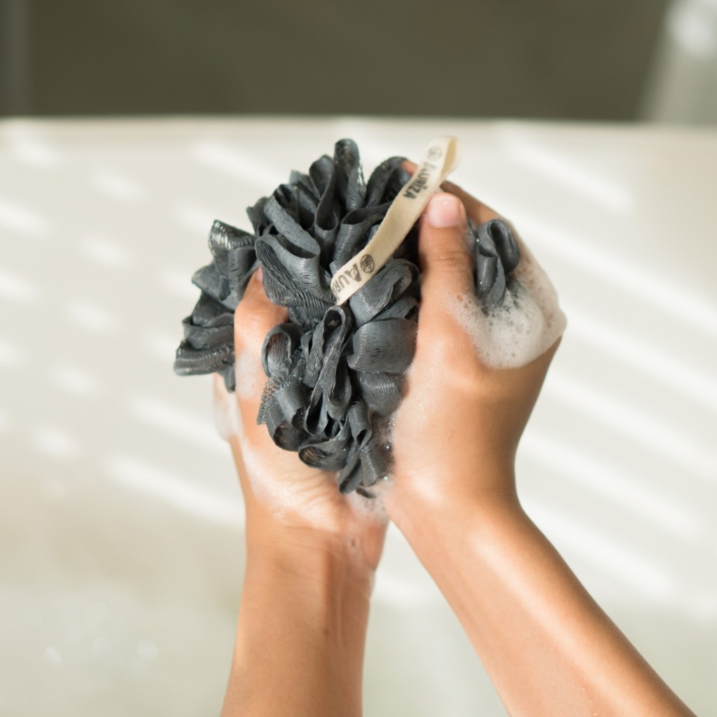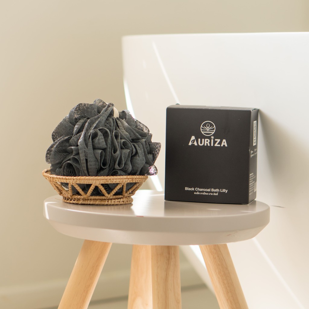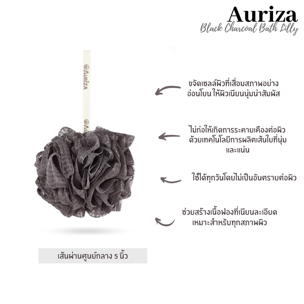 ใยขัดผสม Antibac!! Auriza Black Charcoal Bath Lilly ใยขัดผิวสำหรับอาบน้ำ