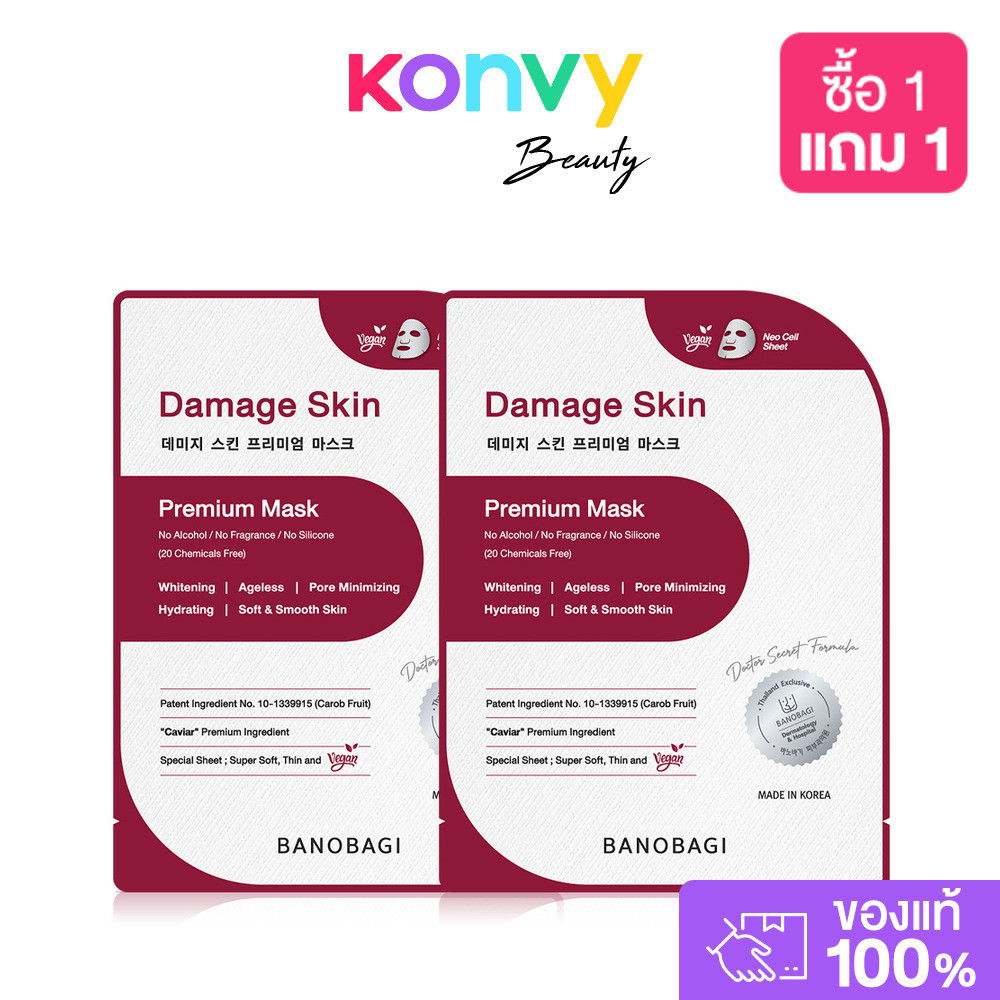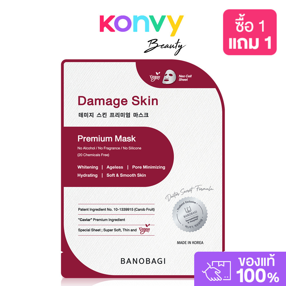 BANOBAGI Damage Skin Premium Mask 25ml มาสก์บำรุงผิวหน้า สูตรกู้ผิวเสีย สู่ผิวพรีเมี่ยม.