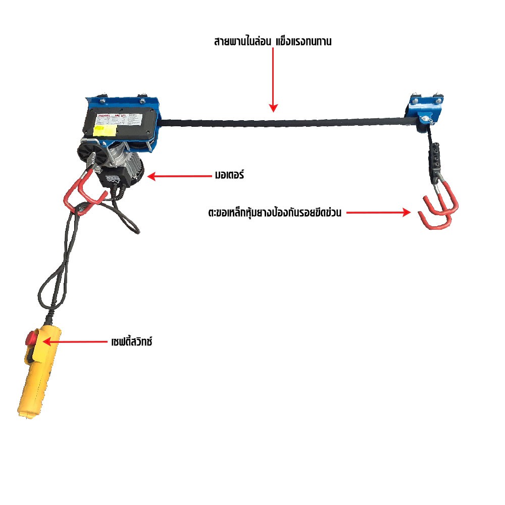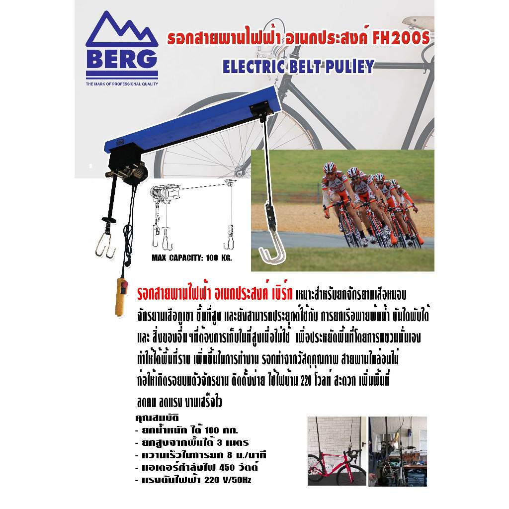 รอกไฟฟ้าติดเพดาน 2 ตะขอ BERG FH200S รอกสายพานอเนกประสงค์สำหรับ ยกเต็นท์หลังคารถ แร็คหลังคา จัดโรงรถ และ แขวนจักรยาน